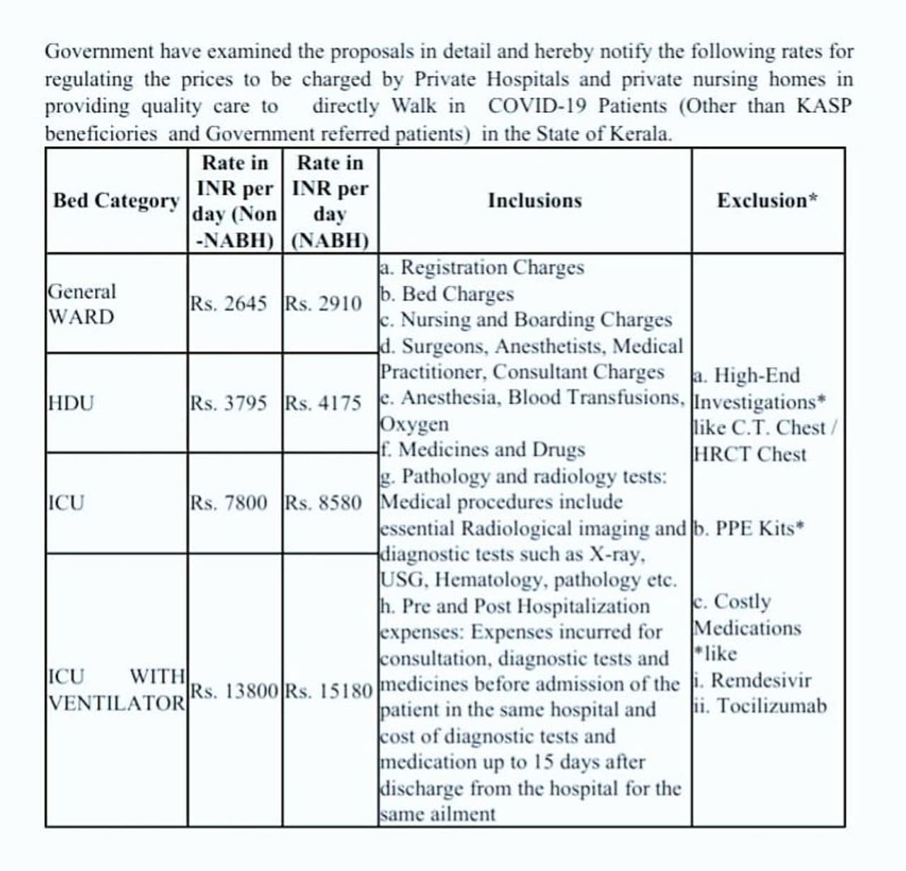 ಮುಖ್ಯಮಂತ್ರಿ ಪಿಣರಾಯಿ ವಿಜಯನ್ ಅವರ ಸರ್ಕಾರ ಇಂದು ಕೇರಳದ ಅಗತ್ಯ ವಸ್ತುಗಳ ನಿಯಂತ್ರಣ ಕಾಯ್ದೆ 1986 ಅನ್ನು ಜಾರಿಗೆ ತಂದಿದೆ. ಈ ಕ್ರಮದಲ್ಲಿ ಆರೋಗ್ಯ ಸೇವೆ ಕೈಗೆಟುಕುವಂತಿದೆ ಎಂದು ಖಚಿತಪಡಿಸಿಕೊಳ್ಳಲು ಎಲ್ಲಾ ಪ್ರಯತ್ನಗಳನ್ನು ಮಾಡಬೇಕೆಂದು ಕೇಂದ್ರ ಸರ್ಕಾರದ ಸಲಹೆಯನ್ನು ಉಲ್ಲೇಖಿಸಿದೆ.