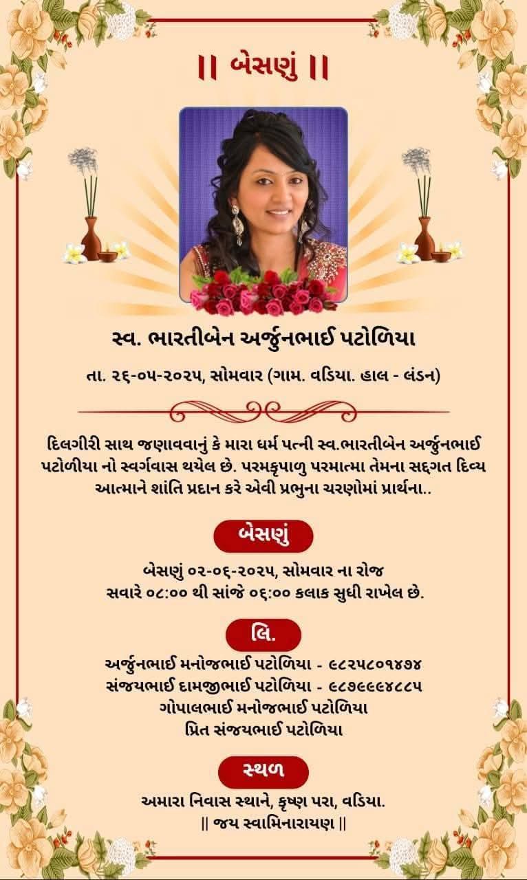 ಅಮ್ರೇಲಿಯಲ್ಲಿ, ಅರ್ಜುನ್ಭಾಯ್ ಅವರ ನಿಧನದ ಸುದ್ದಿ ಅವರ ಕುಟುಂಬ ಮತ್ತು ಸಮುದಾಯದ ಸದಸ್ಯರನ್ನು ದಿಗ್ಭ್ರಮೆಗೊಳಿಸಿದೆ ಮತ್ತು ದುಃಖಿತರನ್ನಾಗಿ ಮಾಡಿದೆ. ಕೆಲವು ದಿನಗಳ ಹಿಂದೆ ಭಾರತಿಬೆನ್ ಅವರ ಚಿತಾಭಸ್ಮವನ್ನು ವಿಸರ್ಜಿಸಲು ಗ್ರಾಮಸ್ಥರು ಸೇರಿದ್ದ ವಾಡಿಯಾ ಗ್ರಾಮದಾದ್ಯಂತ ಶೋಕ ಹರಡಿದೆ.