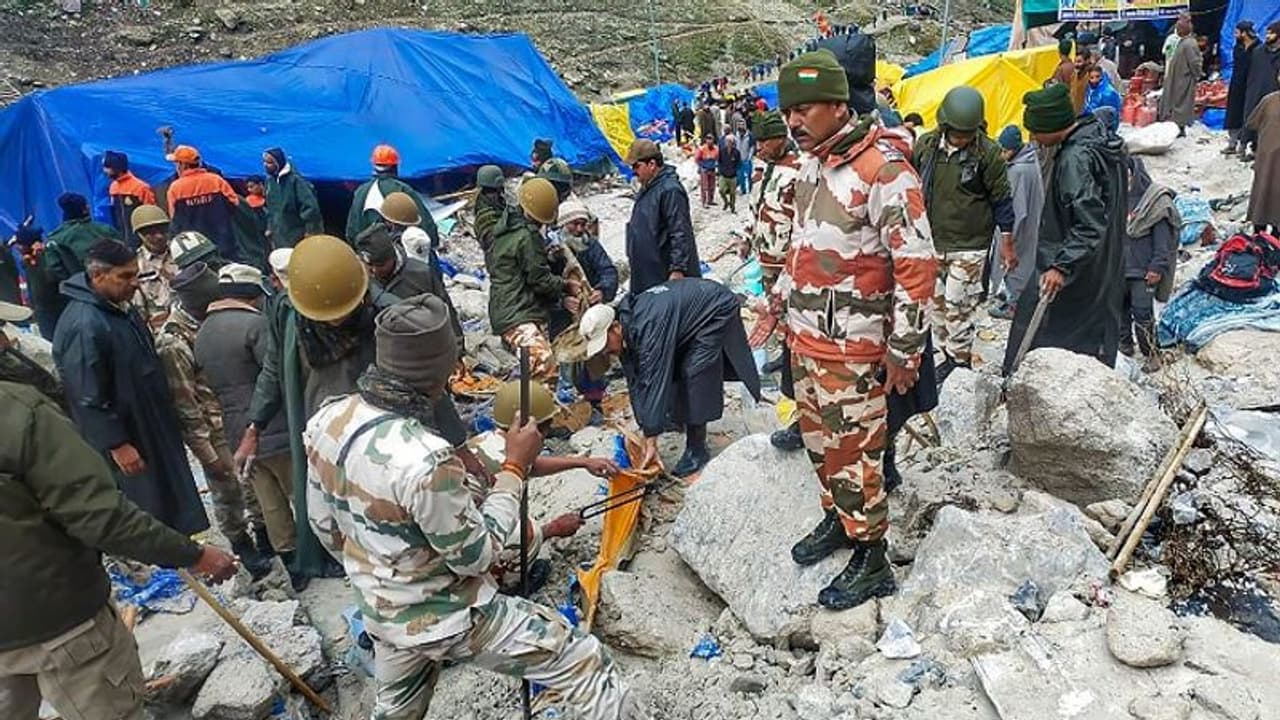 ಅಮರನಾಥ ಯಾತ್ರಾ ಬೇಸ್ ಕ್ಯಾಂಪ್ ವಲಯದಲ್ಲಿ ಮೇಘಸ್ಫೋಟ 16 ಭಕ್ತರು ಸಾವು, ಹಲವರು ಭಕ್ತರು ಕಣ್ಮರೆ ಪ್ರವಾಹ ಕಾರಣ ಸ್ಥಗಿತಗೊಂಡಿದ್ದ ಅಮರನಾಥ ಯಾತ್ರೆ