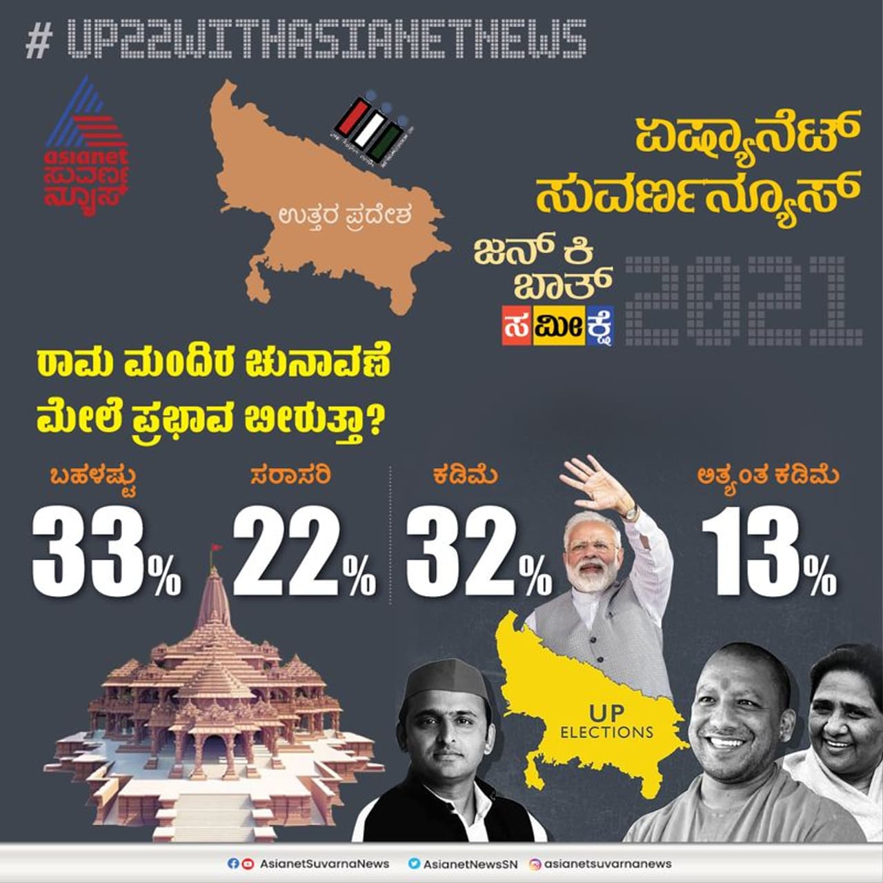 * ಉತ್ತರ ಪ್ರದೆಶ ಚುನಾವಣೆಯಲ್ಲಿ ಯಾವ ಸಮಸ್ಯೆ ಸದ್ದು ಮಾಡಬಹುದು?* ರಾಮ ಮಂದಿರ ಚುನಾವಣೆ ಮೇಲೆ ಪ್ರಭಾವ ಬೀರುತ್ತಾ?* ಏಷ್ಯಾನೆಟ್ ಸುವರ್ಣನ್ಯೂಸ್ -ಜನ್ ಕಿ ಬಾತ್ ಸಮೀಕ್ಷೆ 2021
