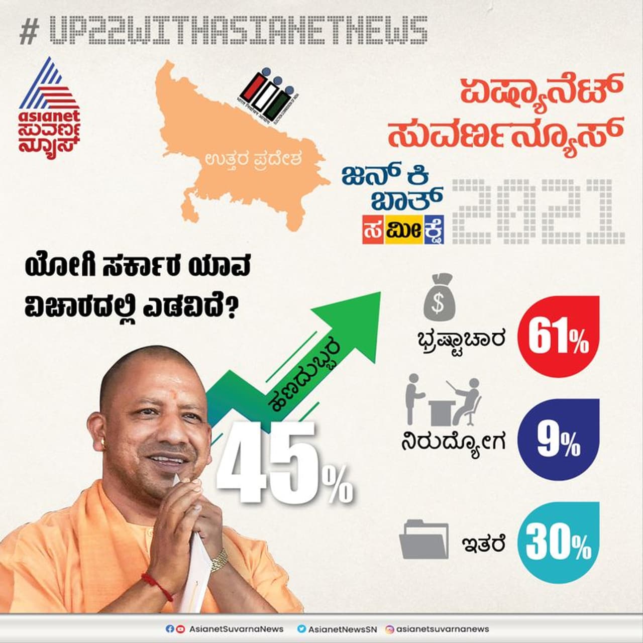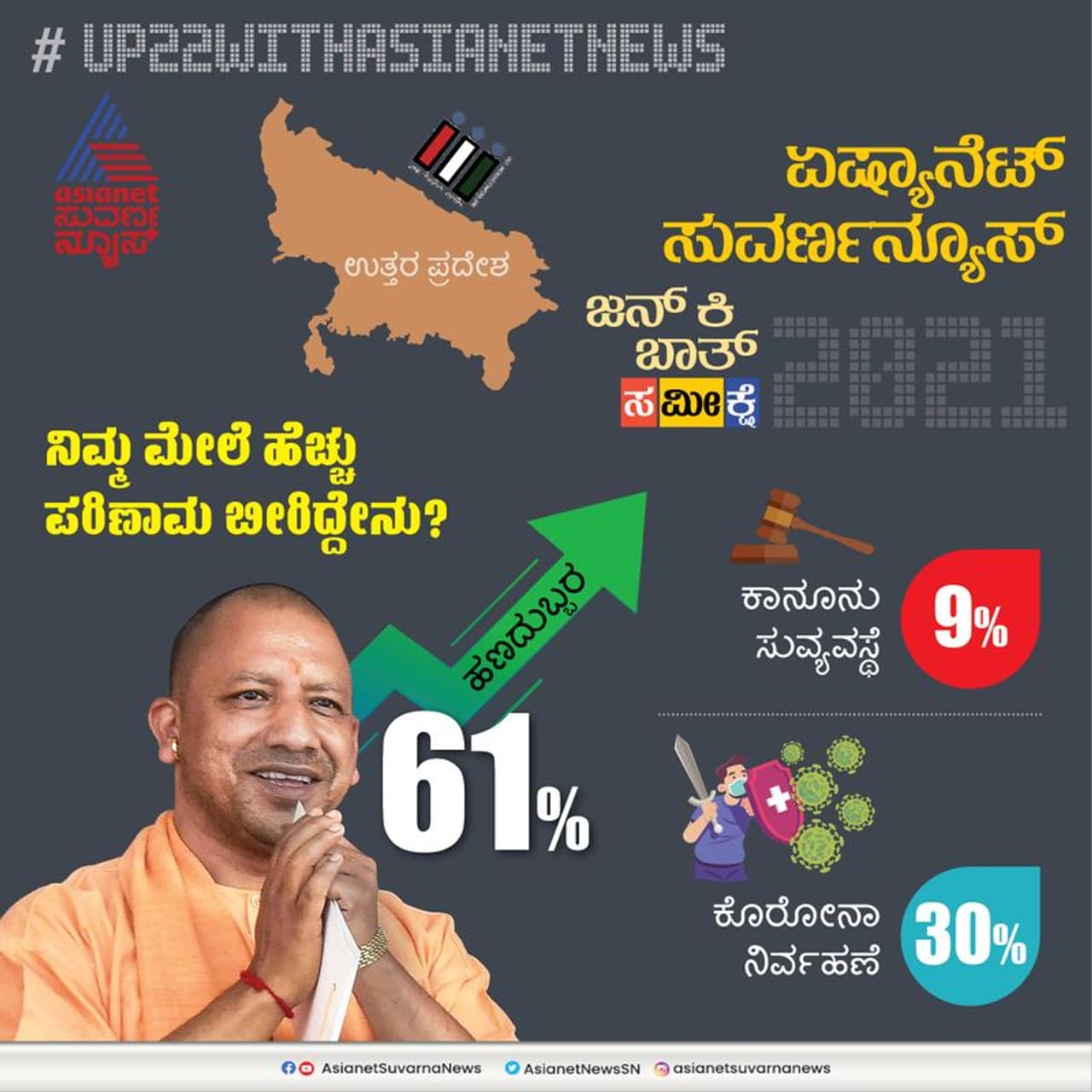 ಇನ್ನು ಉತ್ತರ ಪ್ರದೇಶ ಚುನಾವಣೆಯಲ್ಲಿ ಯೋಗಿ ಸರ್ಕಾರಕ್ಕೆ ಕೊರೋನಾ ಪರಿಸ್ಥಿತಿ ಹಾಗೂ ನಿರ್ವಹಿಸಿದ ಬಗೆ ಬಹುದೊಡ್ಡ ಸವಾಲಾಗಿ ಪರಿಣಮಿಸಲಿದೆ. ಅಂತಹ ಕಠಿಣ ಪರಿಸ್ಥಿತಿಯಲ್ಲಿ ಸರ್ಕಾರ ತೆಗೆದುಕೊಂಡ ಕ್ರಮ ಜನರಿಗೆ ತೃಪ್ತಿ ಕೊಟ್ಟಿದೆಯಾ? ಜಂಗಲ್ ರಾಜ್ ಎಂದೇ ಹೇಳಲಾಗುವ ಉತ್ತರ ಪ್ರದೇಶದಲ್ಲಿರುವ ಕಾನೂನು ಸುವ್ಯವಸ್ಥೆ ಬಗ್ಗೆ ಜನರಿಗೆ ಯಾವ ಅಭಿಪ್ರಾಯವಿದೆ? ಯೋಗಿ ಸರ್ಕಾರ ಮಾಡಿದ ಉತ್ತಮ ಕಾರ್ಯಗಳೇನು? ಎಂಬಿತ್ಯಾದಿ ಪ್ರಶ್ನೆಗಳು ಪ್ರಮುಖ ಪಾತ್ರ ವಹಿಸುತ್ತದೆ. ಸದ್ಯ ಉತ್ತರ ಪ್ರದೇಶದ ಜನರ ಮನದಲ್ಲಿ ಯೋಗಿ ಆಡಳಿತ ವೈಖರಿ ಬಗ್ಗೆ ಜನರ ಮನದಲ್ಲೇನಿದೆ? ಯಾವ ವಿಚಾರದ ಬಗ್ಗೆ ಹೆಚ್ಚು ಅಸಮಾಧಾನವಿದೆ ಎಂದು ಏಷ್ಯಾನೆಟ್- ಜನ್ ಕಿ ಬಾತ್ ನಡೆಸಿದ ಸಮೀಕ್ಷೆಯಲ್ಲಿ ಸ್ಪಷ್ಟವಾಗಿದೆ.