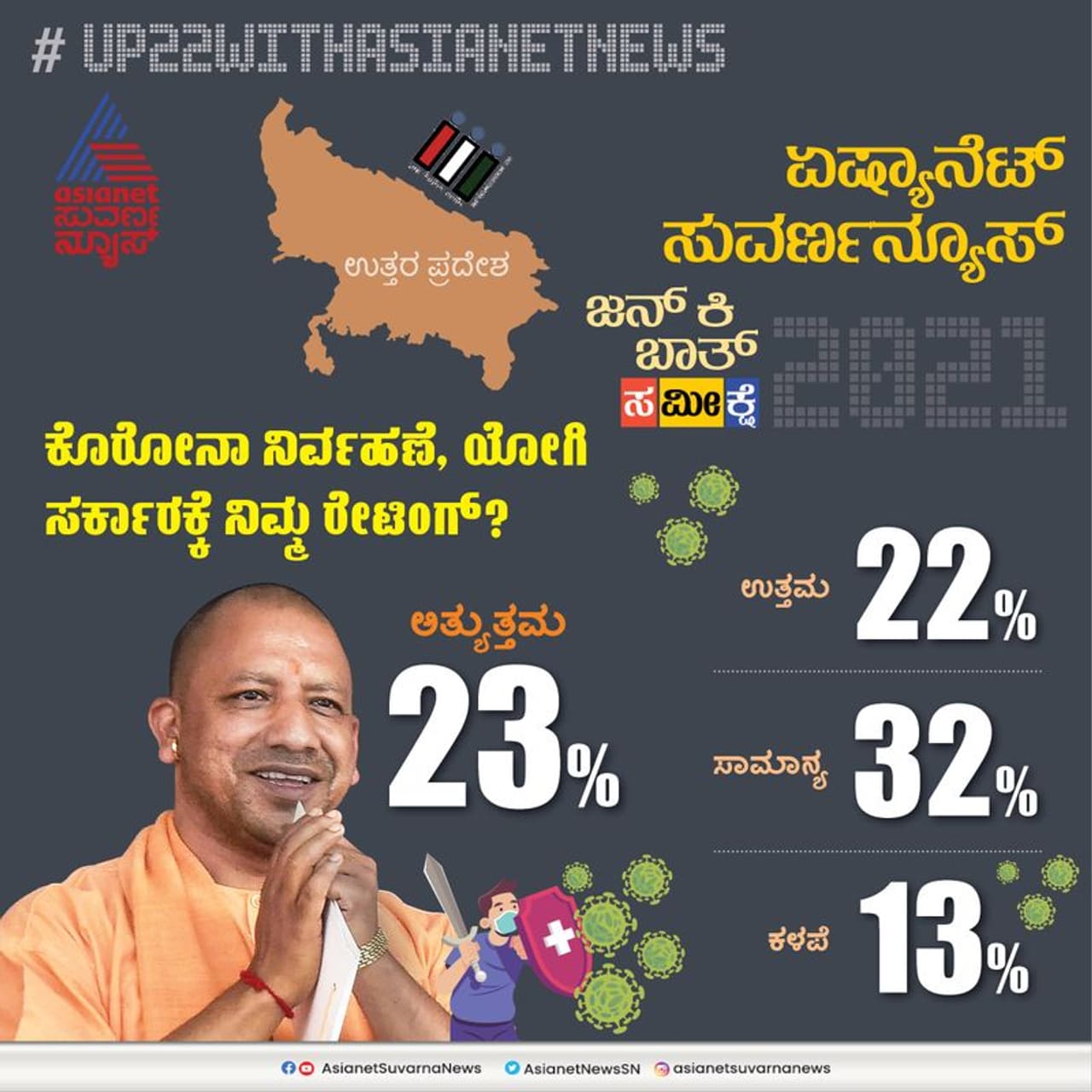 * 2022ರಲ್ಲಿ ಎದುರಾಗಲಿರುವ ದೇಶದ ಅತಿದೊಡ್ಡ ರಾಜ್ಯದ ಚುನಾವಣೆ* ಚುನಾವಣೆಗೂ ಮುನ್ನ ರಾಜ್ಯದ ಜನತೆ ಸರ್ಕಾರಕ್ಕೆ ಕೊಡೋ ರೇಟಿಂಗ್ ಏನು?* ಕೊರೋನಾ ನಿರ್ವಹಣೆಯಲ್ಲಿ ಯೋಗಿ ಪಾಸಾ? ಫೇಲಾ?* ಏಷ್ಯಾನೆಟ್ ಸುವರ್ಣನ್ಯೂಸ್ -ಜನ್ ಕಿ ಬಾತ್ ಸಮೀಕ್ಷೆ 2021