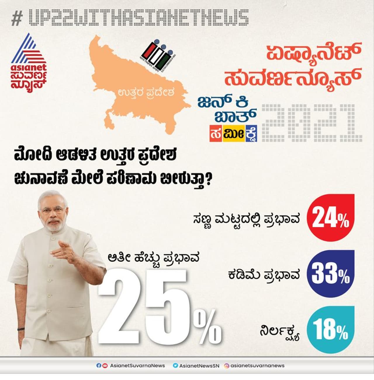 ಮೋದಿ ಆಡಳಿತ ಉತ್ತರ ಪ್ರದೇಶ ಚುನಾವಣೆ ಮೇಲೆ ಎಷ್ಟು ಪ್ರಭಾವ ಬೀರುತ್ತೆ? ಯೋಗಿ ಮುಂದೆ ಮಾಯಾವತಿ ಮತ್ತು ಅಖಿಲೇಶ್ ಬಗ್ಗೆ ಎಷ್ಟಿದೆ ಜನರ ಒಲವು? ಏಷ್ಯಾನೆಟ್ ಸುವರ್ಣನ್ಯೂಸ್-ಜನ್ ಕಿ ಬಾತ್ ನಡೆಸಿದ ಸಮೀಕ್ಷೆ ವರದಿ ಪ್ರಕಟ