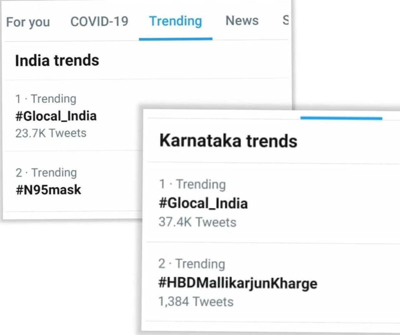 ವಿಶೇಷವೆಂದರೆ ಟ್ರೆಂಡ್ ಪ್ರಾರಂಭಿಸಿದ ಐದೇ ನಿಮಿಷದಲ್ಲಿ ರಾಷ್ಟ್ರೀಯ ಮಟ್ಟದಲ್ಲಿ ಟಾಪ್ 20 ಯಲ್ಲಿ #Glocal_India ಕಾಣಿಸಿಕೊಂಡಿತು. ಅಭಿಯಾನ ಪ್ರಾರಂಭಿಸಿದ ಕೇವಲ 45 ನಿಮಿಷಗಳೊಳಗೆ ರಾಷ್ಟ್ರ ಮಟ್ಟದಲ್ಲಿ ಮೊದಲ ಐದರ ಸ್ಥಾನದಲ್ಲಿತ್ತು #Glocal_India.
