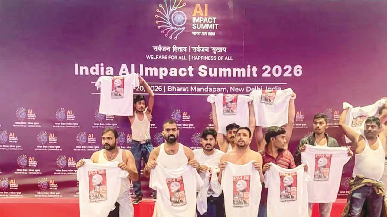 ವಿವಿಧ ದೇಶಗಳ ಮುಖ್ಯಸ್ಥರು, ಜಗತ್ತಿನ ಖ್ಯಾತ ಐಟಿ, ಎಐ ಕಂಪನಿಗಳು ಭಾಗಿಯಾಗಿರುವ ದೆಹಲಿಯ ಜಾಗತಿಕ ಎಐ ಶೃಂಗದ ವೇಳೆ ಕಾಂಗ್ರೆಸ್ ಕಾಯರ್ತಕರ್ತರ ಗುಂಪೊಂದು ಶರ್ಟ್ ಬಿಟ್ಟಿ ಬನಿಯನ್ನಲ್ಲೆ ಪ್ರಧಾನಿ ನರೇಂದ್ರ ಮೋದಿ ವಿರುದ್ಧ ಘೋಷಣ ಕೂಗಿದ ಘಟನೆ ಶುಕ್ರವಾರ ಇಲ್ಲಿ ನಡೆದಿದೆ.