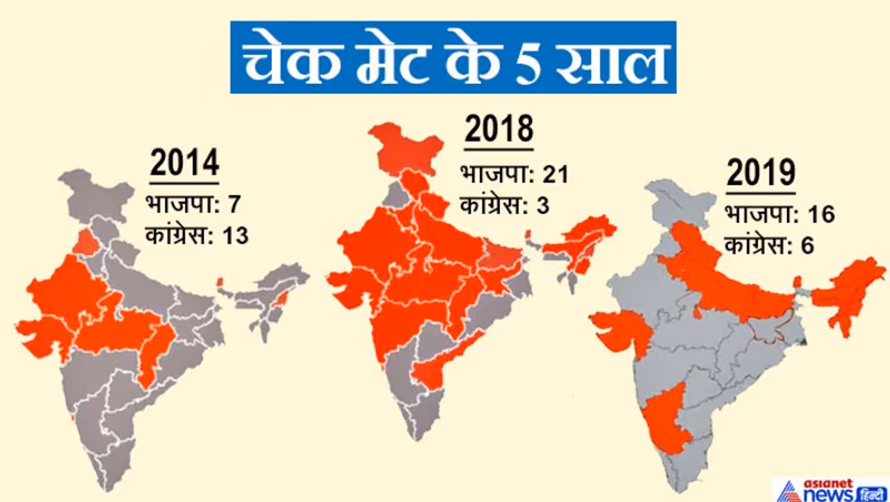 ಇದು ನೂರಕ್ಕೆ ನೂರರಷ್ಟು ಸತ್ಯ.... 2014ರಿಂದ 2018ರ ವರಗೆ ಭಾರತ ಭೂಪಟವನ್ನು ಹಿಡಿದು ನೋಡಿದಾಗ ಎಲ್ಲಾ ಕೇಸರಿಮಯವೇ ಆಗಿತ್ತು. ಮೋದಿ-ಶಾ ಜೋಡೆತ್ತು ಹೋದಲೆಲ್ಲ ಅಭೂತ ಪೂರ್ವವಾಗಿ ಗೆದ್ದು ಬೀಗಿತ್ತು. ಇದೇ ಫುಲ್ ಜೋಶ್ ನಲ್ಲಿದ್ದ ಬಿಜೆಪಿ 'ಕಾಂಗ್ರೆಸ್ ಮುಕ್ತ್ ಭಾರತ್' ಎನ್ನುವ ಘೋಷಣೆಯೊಂದಿಗೆ ಮುನ್ನುಗ್ಗಿತು. ಆದ್ರೆ, 2018ರಲ್ಲಿ ಎದುರಾದ ಪಂಚ ರಾಜ್ಯಗಳ ವಿಧಾನಸಭೆಯಲ್ಲಿ ಕಮಲ ಮುದುಡಿತು. ಬಳಿಕ 2019ರಲ್ಲಿ ಲೋಕಸಭೆ ಚುನಾವಣೆಯಲ್ಲಿ NDA ಮತ್ತೆ ಅಧಿಕಾರಕ್ಕೆ ಬಂದ್ರೂ ಸಹ ವಿಧಾನಸಭೆ ಚುನಾವಣೆಗಳಲ್ಲಿ ಬಿಜೆಪಿ ಸೋಲಿನ ಹಾದಿಯಲ್ಲಿ ಸಾಗುತ್ತಿದೆ.