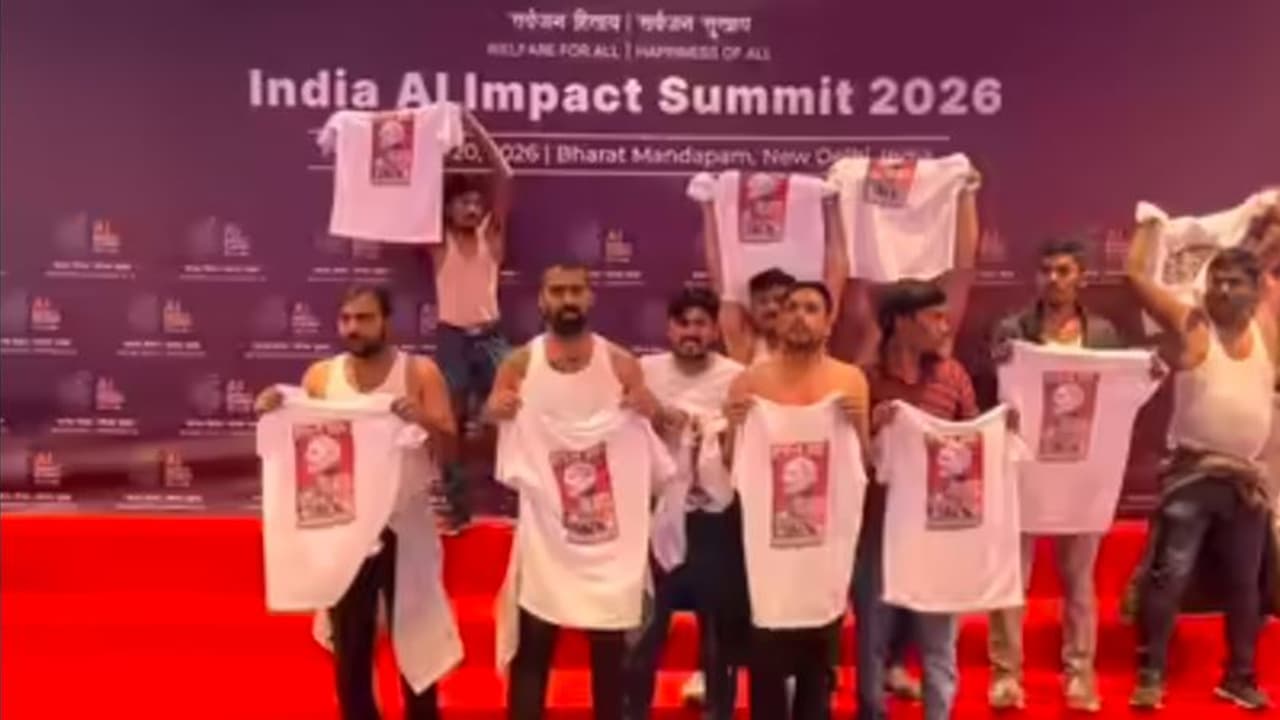 ಭಾರತ್ ಮಂಟಪದಲ್ಲಿ ಜಾಗತಿಕ ಎಐ ಶೃಂಗಸಭೆ 2026 ನಡೆಯುತ್ತಿದ್ದಾಗಲೇ ಪ್ರದರ್ಶನ ಹಾಲ್ ಸಂಖ್ಯೆ 5 ಕ್ಕೆ ಬಂದ 10 ಭಾರತೀಯ ಯುವ ಕಾಂಗ್ರೆಸ್ ಕಾರ್ಯಕರ್ತರು ಪ್ರಧಾನಿ ನರೇಂದ್ರ ಮೋದಿ ವಿರುದ್ಧ ಘೋಷಣೆಗಳನ್ನು ಕೂಗಿ ತಾವು ಧರಿಸಿದ್ದ ಶರ್ಟ್ ತೆಗೆದು ಪ್ರತಿಭಟನೆ ನಡೆಸಿದ್ದಾರೆ. ಈ ಘಟನೆಯನ್ನು ಬಿಜೆಪಿ ತೀವ್ರವಾಗಿ ಖಂಡಿಸಿದೆ.
