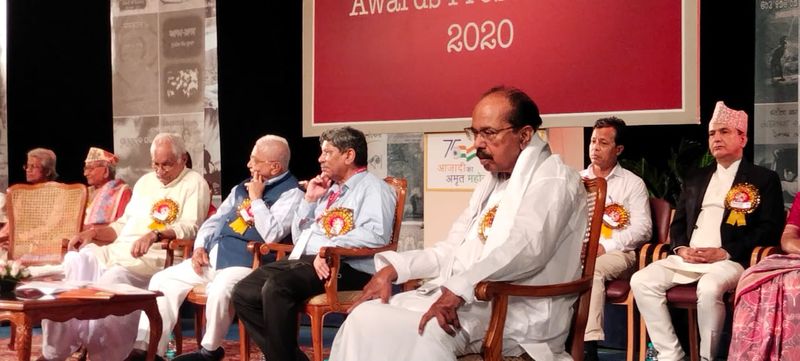 ನವದೆಹಲಿ, (ಸೆ.18): ರಾಜಕೀಯ ನಾಯಕ ಹಾಗೂ ಸಾಹಿತಿ ಎಂ. ವೀರಪ್ಪ ಮೊಯ್ಲಿ ಅವರಿಗೆ 2020ನೇ ಸಾಲಿನ ಕೇಂದ್ರ ಸಾಹಿತ್ಯ ಅಕಾಡೆಮಿ ಪ್ರಶಸ್ತಿ ಲಭಿಸಿದ್ದು, ಇಂದು (ಸೆ.18) ದೆಹಲಿಯಲ್ಲಿ ನಡೆದ ಸಮಾರಂಭದಲ್ಲಿ ವೀರಪ್ಪ ಮೊಯ್ಲಿಗೆ ಪ್ರಶಸ್ತಿ ಪ್ರದಾನ ಮಾಡಲಾಯ್ತು.