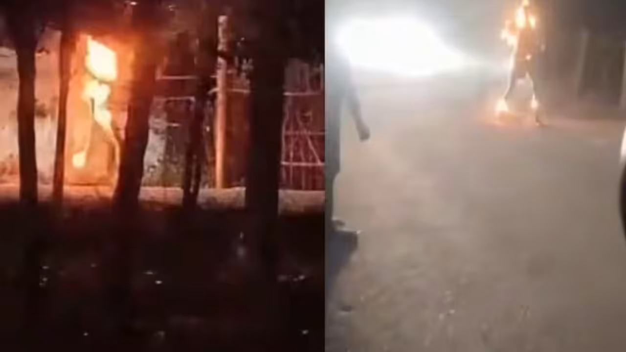 ರಸ್ತೆ ಮಧ್ಯ ಪೆಟ್ರೋಲ್ ಸುರಿದು ಬೆಂಕಿ