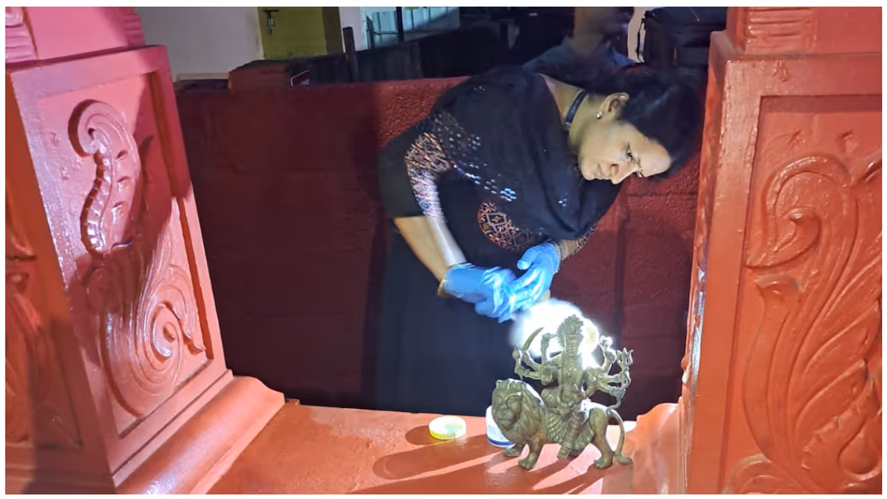 ಈ ಘಟನೆಯ ನಂತರ, ಬೆರಳಚ್ಚು ತಜ್ಞರು ಸ್ಥಳಕ್ಕೆ ಭೇಟಿ ನೀಡಿ ಪರಿಶೀಲನೆ ನಡೆಸಿದರು. ಪೊಲೀಸರು ಸ್ಥಳೀಯ ಸಿಸಿಟಿವಿ ಕ್ಯಾಮೆರಾಗಳನ್ನು ಪರಿಶೀಲಿಸಿ ತನಿಖೆ ಆರಂಭಿಸಿದ್ದಾರೆ. ಇದೇ ದೇವಸ್ಥಾನದಿಂದ ಸ್ಥಳೀಯರು ಕದ್ದಿದ್ದ ಚಿನ್ನ ಮತ್ತು ಬೆಳ್ಳಿ ಗೆಜ್ಜೆಗಳನ್ನು 30 ವರ್ಷಗಳ ಕಾನೂನು ಹೋರಾಟದ ಕಳೆದ ಕೆಲವು ದಿನಗಳಿಂದೀಚೆಗೆ ಮಾತ್ರವೇ ನೆಯ್ಯಟ್ಟಿಂಕರ ನ್ಯಾಯಾಲಯದಿಂದ ದೇವಾಲಯದ ಅಧಿಕಾರಿಗಳಿಗೆ ಹಸ್ತಾಂತರಿಸಲಾಯಿತು. ಈ ಕಳ್ಳತನದ ಗ್ಯಾಂಗಿನ ಯಾವುದಾದರೂ ಆರೋಪಿ ಇಲ್ಲಿ ವಿಗ್ರಹವನ್ನು ಇಟ್ಟು ಹೋಗಿದ್ದಾರೆಯೇ ಎಂಬ ಅನುಮಾನವೂ ಪೊಲೀಸರಿಗೆ ಕಾಡುತ್ತಿದೆ.