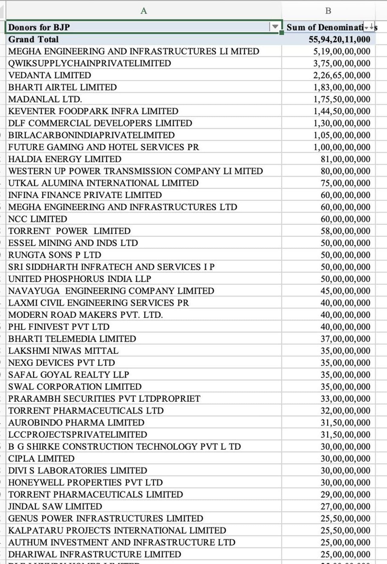 ಬಿಜೆಪಿಯ ಚುನಾವಣಾ ಬಾಂಡ್ ಡೋನರ್ಗಳು