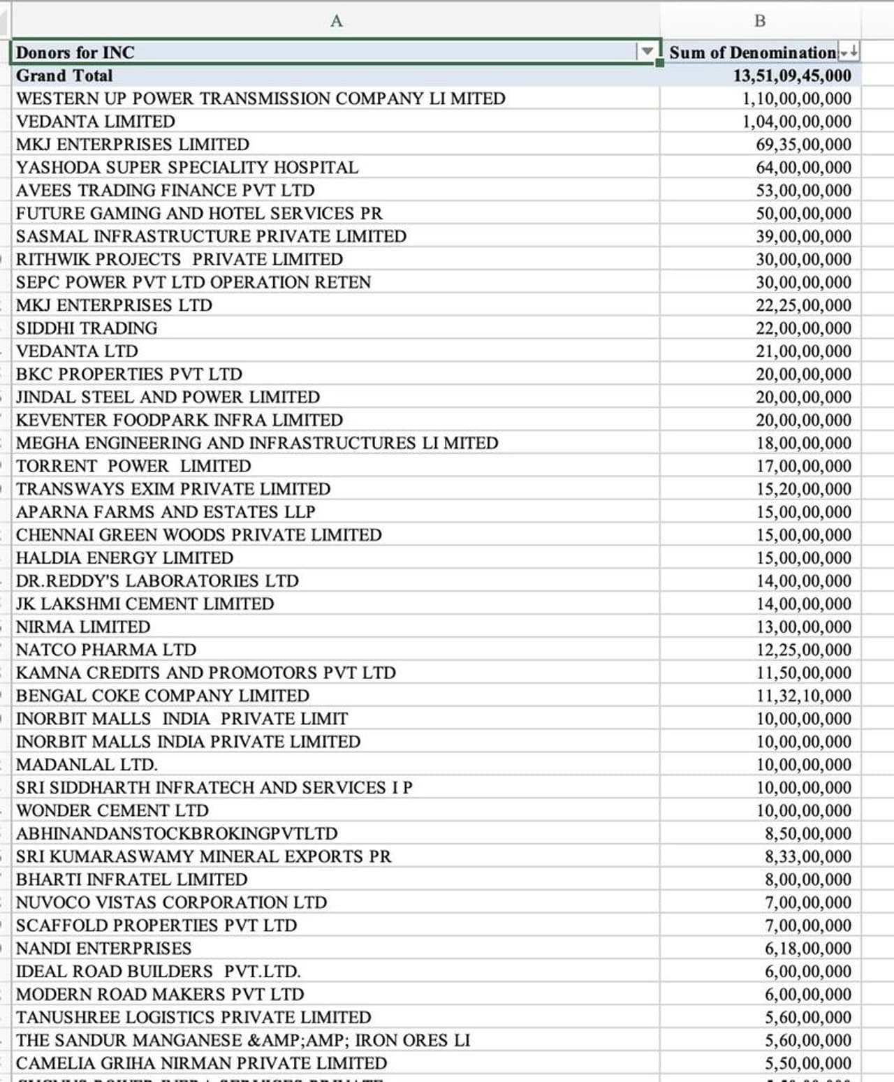 ಕಾಂಗ್ರೆಸ್ನ ಡೋನರ್ಗಳ ಲಿಸ್ಟ್
