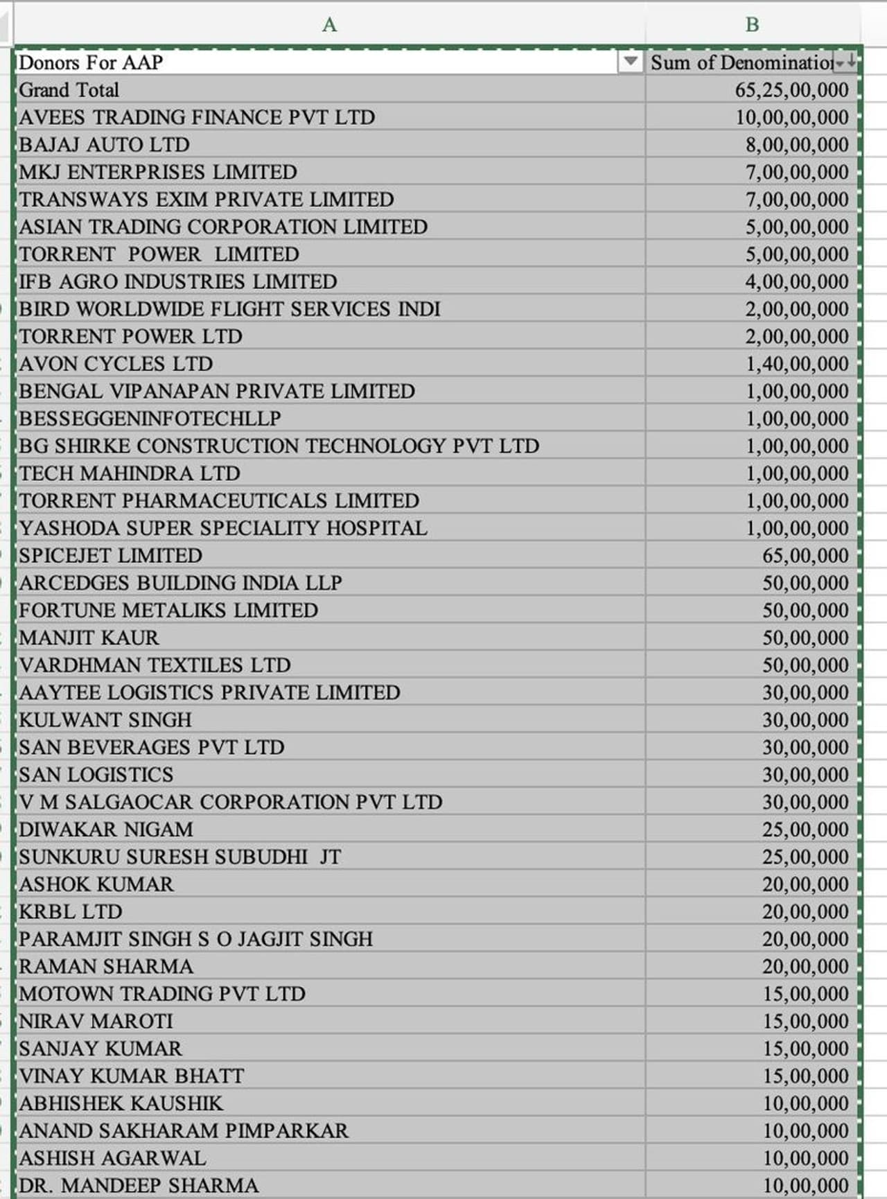 ಆಮ್ ಆದ್ಮಿ ಪಾರ್ಟಿ ಡೋನರ್ ಲಿಸ್ಟ್
