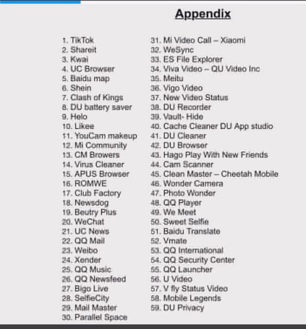ಭಾರತೀಯರ ಮಾಹಿತಿ ಶೇಖರಿಸಿಡಲು ಸ್ಥಳೀಯ ಸರ್ವರ್ಗಳನ್ನು ಮಾಡದೇ ವಿದೇಶದಲ್ಲಿ ಮಾಹಿತಿ ಶೇಖರಿಸಿಟ್ಟು ಸೋರಿಕೆ ಮಾಡುತ್ತಿದೆ. ಇದು ಬಳಕೆದಾರರ ಡೇಟಾವನ್ನು ಅನಧಿಕೃತ ರೀತಿಯಲ್ಲಿ ಕದಿಯಲು ಮತ್ತು ರಹಸ್ಯವಾಗಿ ರವಾನಿಸಲು ಆಂಡ್ರಾಯ್ಡ್ ಮತ್ತು IOS ಪ್ಲಾಟ್ಫಾರ್ಮ್ಗಳಲ್ಲಿ ಲಭ್ಯವಿರುವ ಹಾಗೂ ಕೆಲವು ಮೊಬೈಲ್ ಅಪ್ಲಿಕೇಶನ್ಗಳ ದುರುಪಯೋಗದ ಬಗ್ಗೆ ಹಲವಾರು ದೂರಗಳು ಬಂದಿವೆ. ಭಾರತದ ಸಾರ್ವಭೌಮತ್ವ ಮತ್ತು ಸಮಗ್ರತೆಗೆ ಧಕ್ಕೆ ತರುವ ಗಂಭೀರ ವಿಚಾರವಾಗಿದ್ದು, ತುರ್ತು ಕ್ರಮಗಳ ಅಗತ್ಯವಿದೆ. ಹೀಗಾಗಿ 59 ಆ್ಯಪ್ ಬ್ಯಾನ್ ಮಾಡುತ್ತಿದೆ ಎಂದಿದೆ.