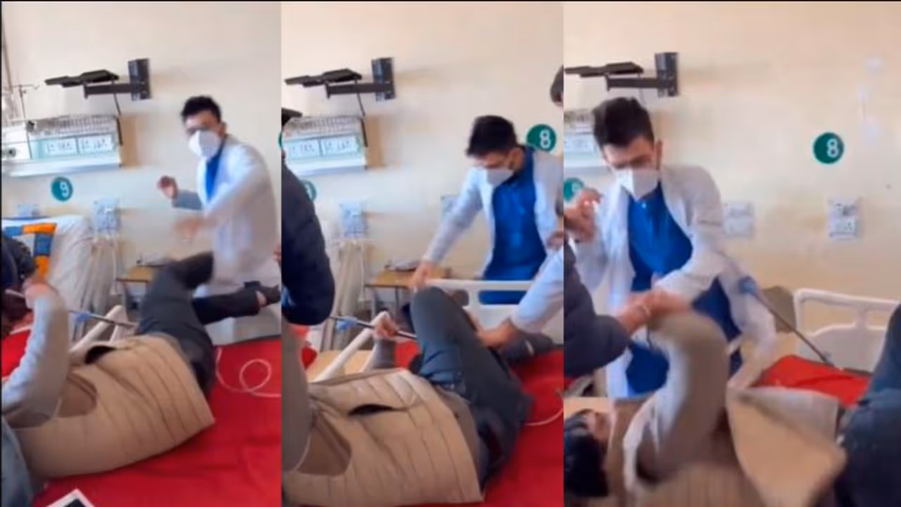 ಆಸ್ಪತ್ರೆಯೊಂದರ ಬೆಡ್ನಲ್ಲಿ ಮಲಗಿದ್ದ ರೋಗಿಯೊಬ್ಬನಿಗೆ ಆಸ್ಪತ್ರೆಯಲ್ಲಿ ಚಿಕಿತ್ಸೆ ನೀಡಬೇಕಾದ ವೈದ್ಯನೋರ್ವ ಹಿಗ್ಗಾಮುಗ್ಗಾ ಥಳಿಸಿದ್ದಾನೆ. ಘಟನೆಯ ವೀಡಿಯೋ ಸಾಮಾಜಿಕ ಜಾಲತಾಣದಲ್ಲಿ ವೈರಲ್ ಆಗಿದ್ದು, ವಿಚಾರ ತಿಳಿದು ಆಸ್ಪತ್ರೆಗೆ ಬಂದ ರೋಗಿಯ ಸಂಬಂಧಿಕರು ಹಾಗೂ ಊರವರು ಆಸ್ಪತ್ರೆಯಲ್ಲಿ ಪ್ರತಿಭಟನೆ ನಡೆಸಿದ್ದಾರೆ. ಹೀಗೆ ರೋಗಿಯ ಮೇಲೆ ಹಲ್ಲೆ ಮಾಡಿದ ವೈದ್ಯನನ್ನು ಕೂಡಲೇ ಸೇವೆಯಿಂದ ವಜಾ ಮಾಡುವಂತೆ ಆಗ್ರಹಿಸಿದ್ದಾರೆ. ಹಿಮಾಚಲ ಪ್ರದೇಶದ ಶಿಮ್ಲಾದ ಇಂದಿರಾ ಗಾಂಧಿ ಮೆಡಿಕಲ್ ಕಾಲೇಜು (ಐಜಿಎಂಸಿ) ಆಸ್ಪತ್ರೆಯಲ್ಲಿ ಈ ಘಟನೆ ನಡೆದಿದ್ದು, ಘಟನೆಯ ವೀಡಿಯೋ ಈಗ ಸಾಮಾಜಿಕ ಜಾಲತಾಣದಲ್ಲಿ ಭಾರಿ ವೈರಲ್ ಆಗಿದ್ದು, ವ್ಯಾಪಕ ಆಕ್ರೋಶಕ್ಕೆ ಕಾರಣವಾಗಿದೆ.