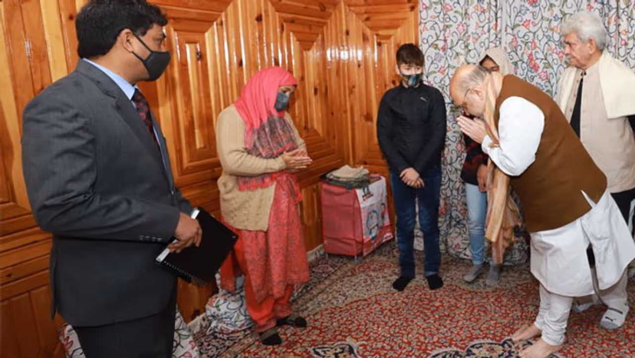 ಜಮ್ಮು ಕಾಶ್ಮೀರ ಹುತಾತ್ಮ ಇನ್ಸ್ಪೆಕ್ಟರ್ ಪರ್ವೇಜ್ ಮನೆಗೆ ಅಮಿತ್ ಶಾ ಭೇಟಿ, ಪತ್ನಿಗೆ ಸರ್ಕಾರಿ ಉದ್ಯೋಗ!