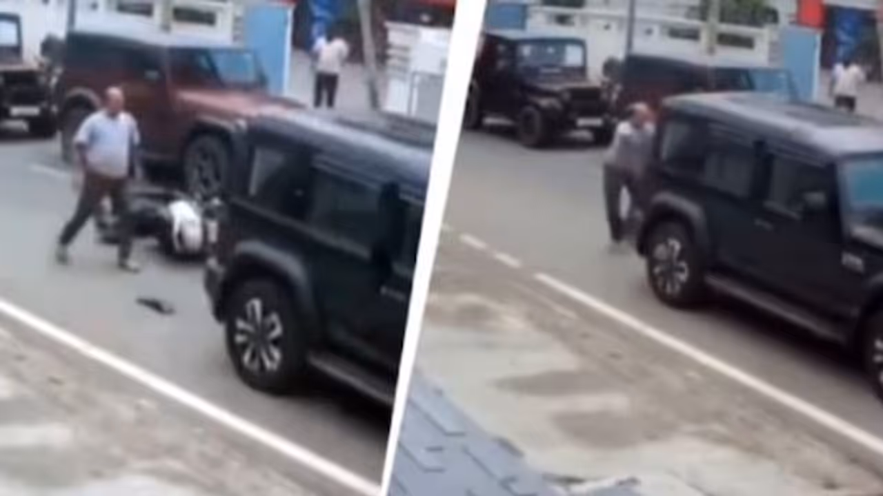 ಜಮ್ಮುವಿನಲ್ಲಿ ಮಹೀಂದ್ರ ಥಾರ್ ಚಾಲಕನೊಬ್ಬ ಸ್ಕೂಟರ್ ಸವಾರ ವೃದ್ಧನಿಗೆ ಡಿಕ್ಕಿ ಹೊಡೆದು ಪರಾರಿಯಾಗಿದ್ದಾನೆ. ವೃದ್ಧರು ಬೀಳುತ್ತಿದ್ದಂತೆ ಮತ್ತೆ ರಿವರ್ಸ್ನಲ್ಲಿ ಬಂದು ಡಿಕ್ಕಿ ಹೊಡೆದಿದ್ದು, ಸಿಸಿಟಿವಿಯಲ್ಲಿ ದೃಶ್ಯ ಸೆರೆಯಾಗಿದೆ.