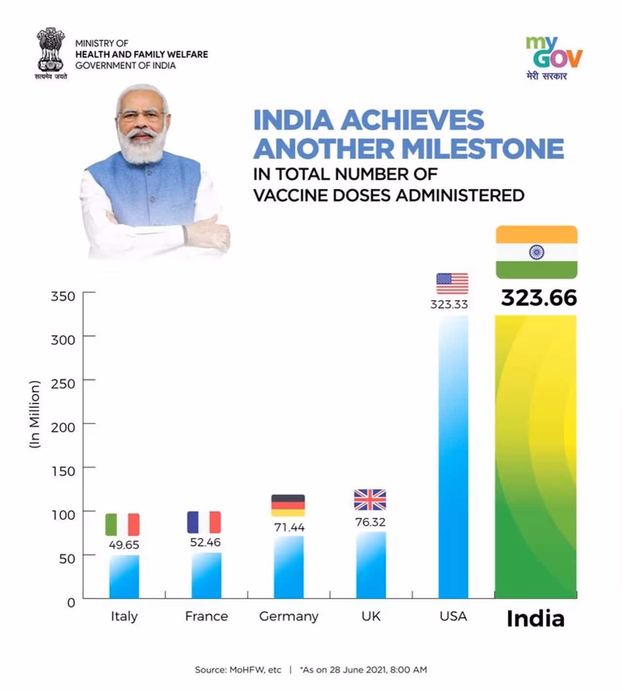 * ವಿಶ್ವಾದ್ಯಂತ ನಡೆಯುತ್ತಿದೆ ಕೊರೋನಾ ಲಸಿಕಾ ಅಭಿಯಾನ* ವಿಶ್ವದ ಇತರ ಟಾಪ್ ದೇಶಗಳನ್ನು ಹಿಂದಿಕ್ಕಿದ ಭಾರತ* ಭಾರತದಲ್ಲಿ ಈವರೆಗೆ 32ಕ ಕೋಟಿಗೂ ಅಧಿಕ ಜನರಿಗೆ ಲಸಿಕೆ