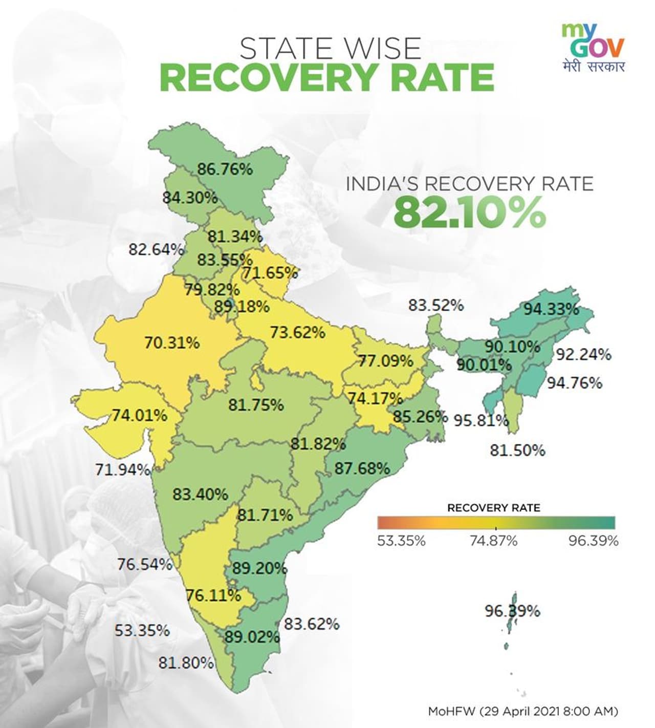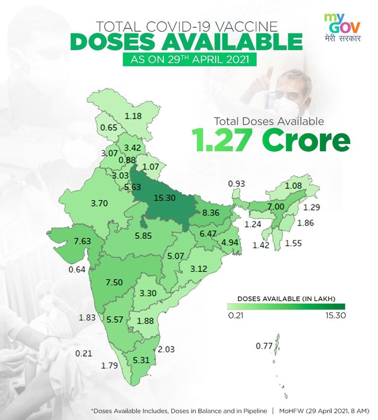 ಭಾರತದ ಚೇತರಿಕೆ ದರ ಶೇ. 82.10 ತಲುಪಿದೆ. ಏಪ್ರಿಲ್ 29 ರಂದು ಲಭ್ಯವಿರುವ ಒಟ್ಟು COVID19 ಲಸಿಕೆ ಪ್ರಮಾಣ 1.27 ಕೋಟಿ, 2021 ರ ಜನವರಿ 16 ರಿಂದ ಏಪ್ರಿಲ್ 29 ರವರೆಗೆ 15.11 ಕೋಟಿ ಜನರಿಗೆ ಲಸಿಕೆ ಹಾಕಲಾಗಿದೆ. ಈ ಮೂರು ಪ್ರಮುಖ ಅಂಶಗಳನ್ನು ತಿಳಿಸಿದೆ.