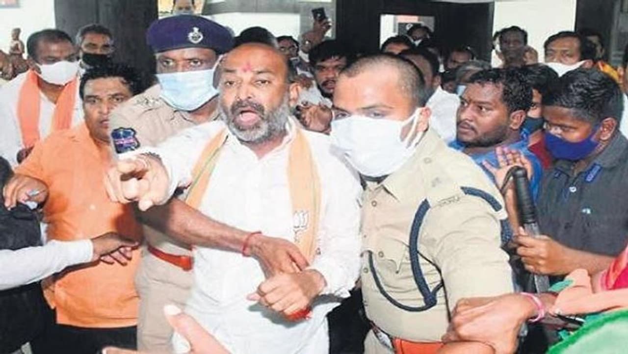 ತೆಲಂಗಾಣ ಬಿಜೆಪಿ ರಾಜ್ಯಾಧ್ಯಕ್ಷ ಬಿ. ಸಂಜಯ್ ಕುಮಾರ್ ಅವರನ್ನು 14 ದಿನಗಳ ನ್ಯಾಯಾಂಗ ಬಂಧನ ವಿಧಿಸಲಾಗಿದೆ. ಕೋವಿಡ್ ನಿಯಮ ಉಲ್ಲಂಘಿಸಿದ ಬಿಜೆಪಿ ರಾಜ್ಯಾಧ್ಯಕ್ಷರನ್ನು ಭಾನುವಾರ ಬಂಧಿಸಲಾಗಿತ್ತು. ಸೋಮವಾರ ಪೊಲೀಸರು ಅವರನ್ನು ನ್ಯಾಯಾಲಯಕ್ಕೆ ಹಾಜರುಪಡಿಸಿದ್ದು, ಬಿಜೆಪಿ ರಾಜ್ಯಾಧ್ಯಕ್ಷರ ವಿರುದ್ಧ ವಿಪತ್ತು ನಿರ್ವಹಣಾ ಕಾಯ್ದೆಯಡಿ ಪ್ರಕರಣ ದಾಖಲಿಸಲಾಗಿದೆ. ಬಿ. ಸಂಜಯ್ ಕುಮಾರ್ ಬಂಧನಕ್ಕೆ ಬಿಜೆಪಿ ರಾಷ್ಟ್ರೀಯ ಅಧ್ಯಕ್ಷ ಜೆ.ಪಿ.ನಡ್ಡಾ ಆಕ್ಷೇಪ ವ್ಯಕ್ತಪಡಿಸಿದ್ದಾರೆ.