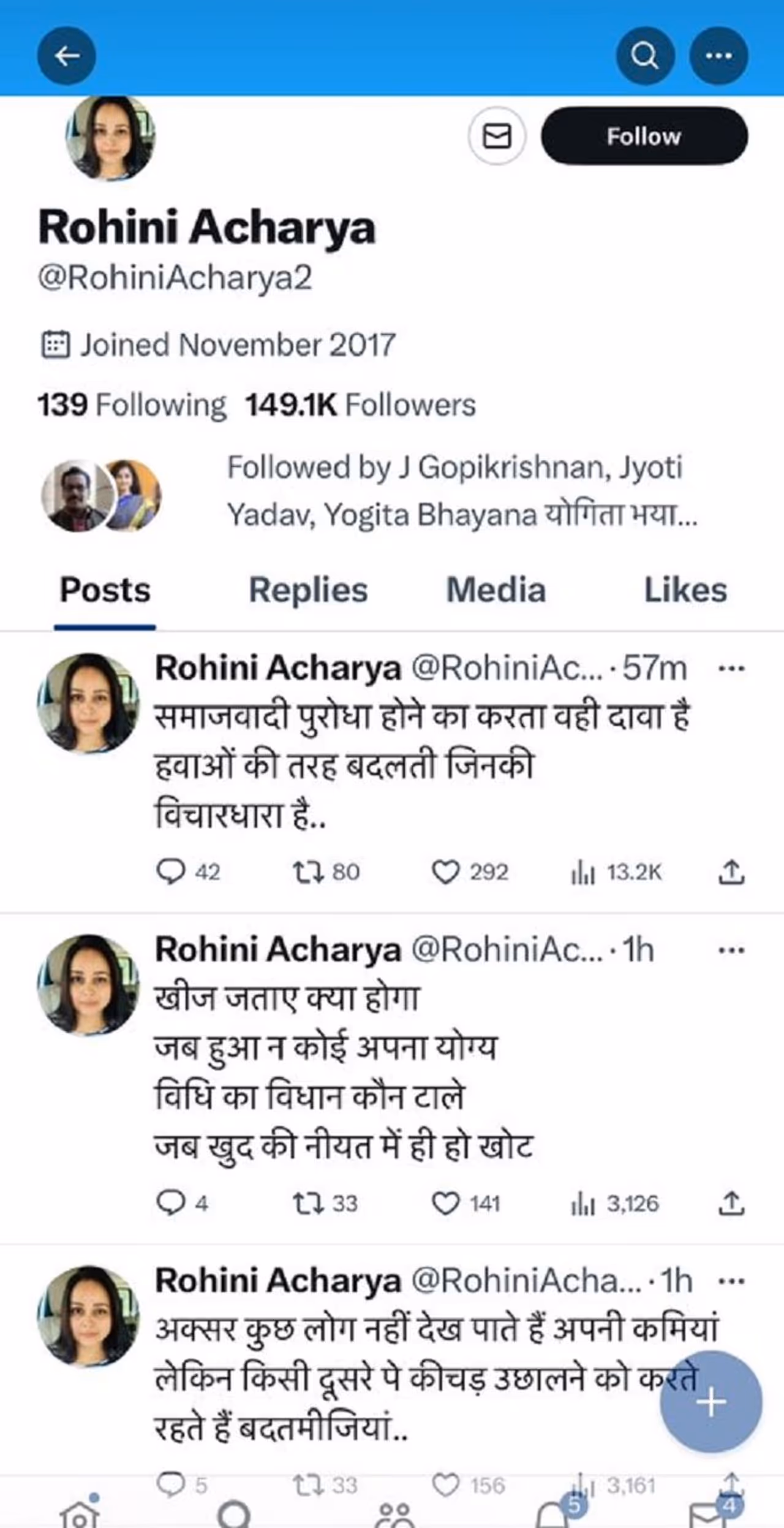 ನಿತೀಶ್ ಕುಮಾರ್ ಅವರ ಹೆಸರನ್ನು ಸ್ಪಷ್ಟವಾಗಿ ಉಲ್ಲೇಖಿಸದಿದ್ದರೂ, ಟ್ವೀಟ್ನ ಸಂದರ್ಭವು ಬಿಹಾರ ಸಿಎಂ ಅನ್ನು ಗುರಿಯಾಗಿಸಿಕೊಂಡಿದೆ ಎಂಬುಉ ಬಹುತೇಕ ಸ್ಪಷ್ಟವಾಗಿದೆ. ನಂತರದ ಟ್ವೀಟ್ನಲ್ಲಿ, ಅನರ್ಹರಿಗೆ ಪ್ರಾಮುಖ್ಯತೆ ನೀಡಿದಾಗ ಯಾವ ಆಕ್ರೋಶ ಉಂಟಾಗುತ್ತದೆ? ಒಬ್ಬರ ಸ್ವಂತ ಉದ್ದೇಶದಲ್ಲಿ ಮೋಸವಿರುವಾಗ ವಿಧಾನವನ್ನು ಯಾರು ಪ್ರಶ್ನಿಸಬಹುದು? ಎಂದೂ ರೋಹಿಣಿ ಆಚಾರ್ಯ ಪೋಸ್ಟ್ ಮಾಡಿದ್ದರು.