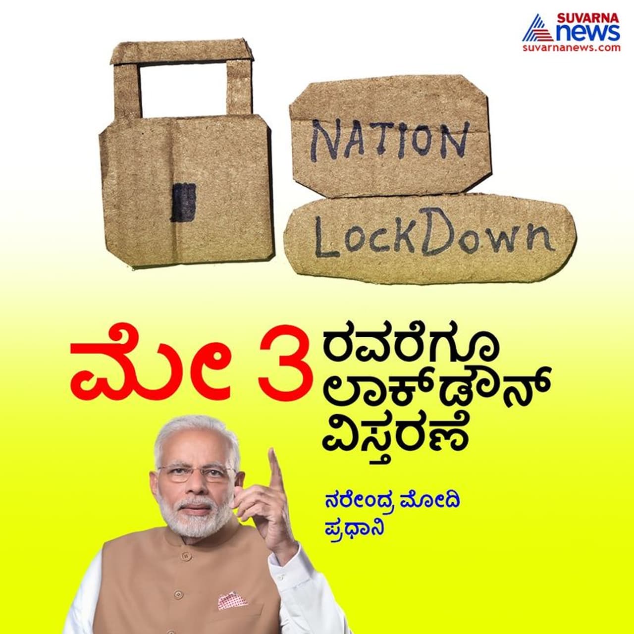 ಮೇ. 3ವರೆಗೆ ದೇಶದಾದ್ಯಂತ ಲಾಕ್ಡೌನ್ ಘೋಷಣೆ| ಎಲ್ಲರ ಸಲಹೆ ಸೂಚನೆ ಮೇರೆಗೆ ಲಾಕ್ಡೌನ್ ವಿಸ್ತರಿಸಿರುವ ಮೋದಿ| ಲಾಕ್ಡೌನ್ ಸಡಿಲಿಕೆಗೆ ನಿಯಮ