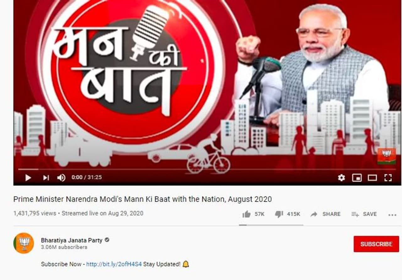 ಮೋದಿ ಮನ್ ಕೀ ಭಾರೀ Dislike| ಸಮಸ್ಯೆಗಳ ನಿವಾರಣೆ ಬಗ್ಗೆ ಮಾತನಾಡಿ ಎಂದು ಆಕ್ರೋಶ| ಎಷ್ಟು ಮಂದಿ ಇಷ್ಟಪಟ್ಟಿದ್ದಾರೆ? Dislike ಮಾಡಿದ್ದಾರೆ? ಇಲ್ಲಿದೆ ವಿವರ