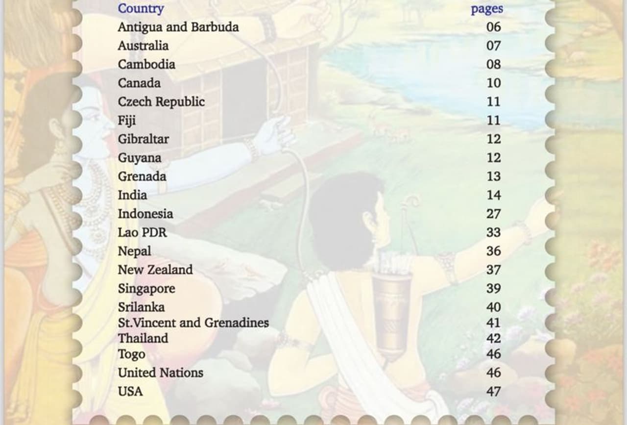 ಸ್ಮರಣಾರ್ಥ ಅಂಚೆಚೀಟಿ ಸಂಗ್ರಹವು ಆರು ವಿಭಿನ್ನ ಅಂಚೆಚೀಟಿಗಳನ್ನು ಒಳಗೊಂಡಿದೆ, ಪ್ರತಿಯೊಂದೂ ಭಗವಾನ್ ರಾಮನ ನಿರೂಪಣೆಗೆ ಸಂಬಂಧಿಸಿದ ಪ್ರಮುಖ ವ್ಯಕ್ತಿಗಳು ಮತ್ತು ಚಿಹ್ನೆಗಳನ್ನು ಒಳಗೊಂಡಿದೆ. ಅಂಚೆಚೀಟಿಗಳು ರಾಮ ಮಂದಿರ, ಗಣೇಶ, ಹನುಮಾನ್, ಜಟಾಯು, ಕೇವತ್ರಾಜ್ ಮತ್ತು ಮಾ ಶಬರಿಯ ಚಿತ್ರಣಗಳನ್ನು ಒಳಗೊಂಡಿವೆ.