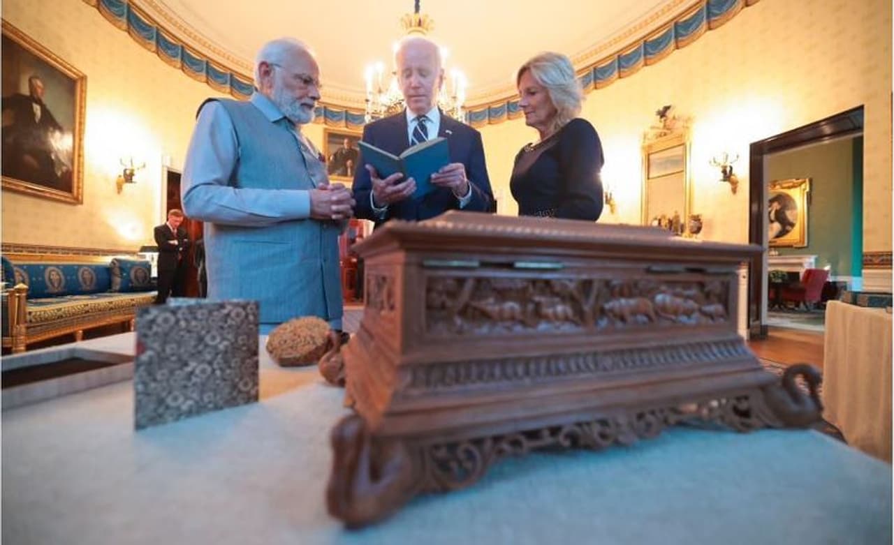 ಅಮೆರಿಕಾದ ಪ್ರವಾಸದಲ್ಲಿರುವ ಪ್ರಧಾನಿ ನರೇಂದ್ರ ಮೋದಿ ಭಾರತದ ವಿವಿಧ ಸಂಸ್ಕೃತಿಯನ್ನು ಪ್ರತಿನಿಧಿಸುವ ಅಮೂಲ್ಯವಾದ ಹಲವು ಉಡುಗೊರೆಗಳನ್ನು ಅಮೆರಿಕಾ ಅಧ್ಯಕ್ಷ ಜೋ ಬೈಡೆನ್ ದಂಪತಿಗೆ ಉಡುಗೊರೆಯಾಗಿ ನೀಡಿದ್ದಾರೆ.
