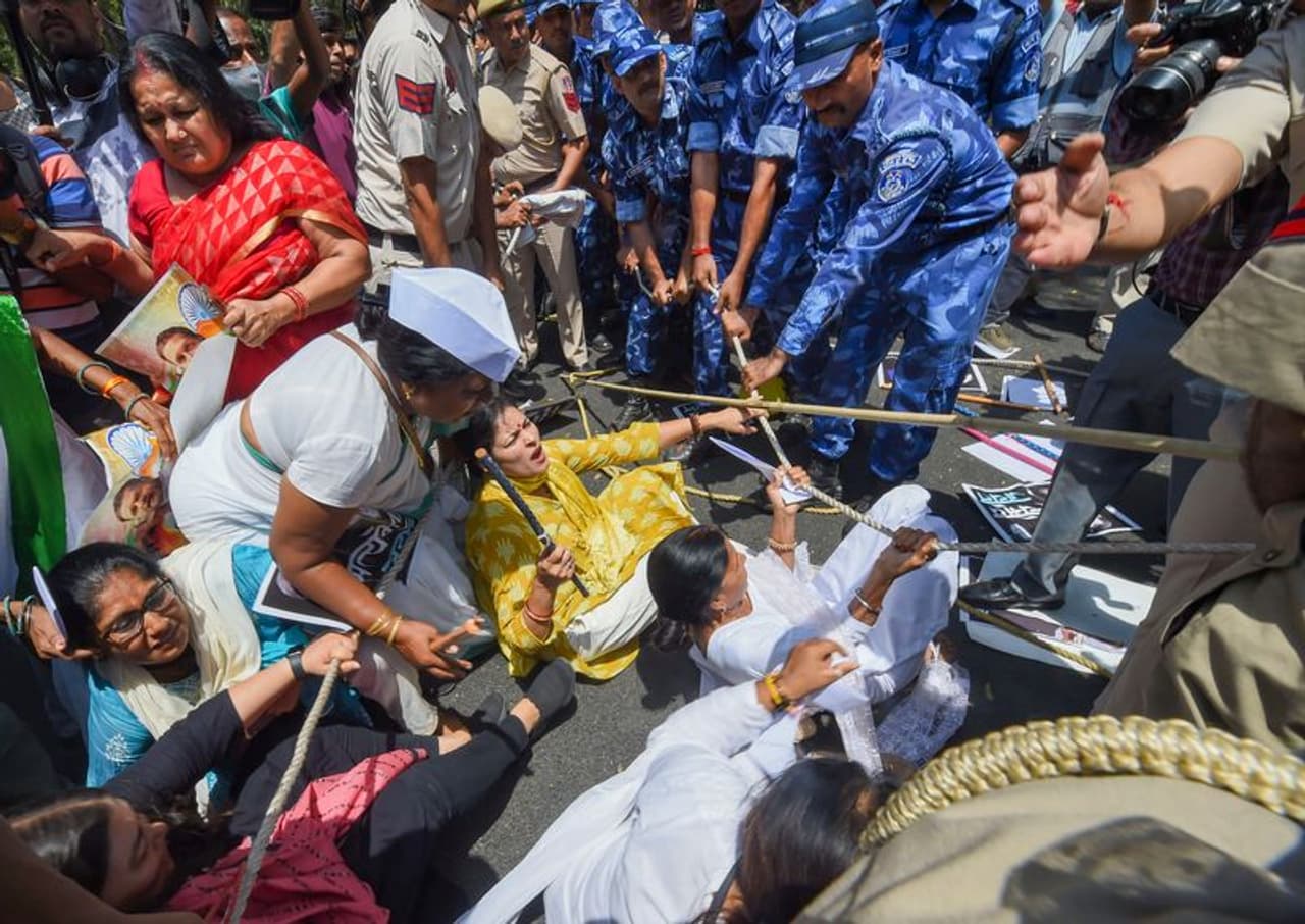 ಪೊಲೀಸರು ಮತ್ತು ಕಾರ್ಯಕರ್ತರ ನಡುವೆ ಘರ್ಷಣೆ ಕೂಡ ನಡೆಯಿತು. ಪೊಲೀಸರು ಹಲ್ಲೆ ಮಾಡಿದ್ದಾರೆ ಎಂದು ಕಾಂಗ್ರೆಸ್ ಮುಖಂಡರು ಮತ್ತೆ ಆರೋಪಿಸಿದ್ದಾರೆ.