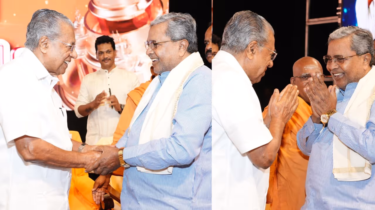 ಇದರ ನಡುವೆ ಮುಖ್ಯಮಂತ್ರಿ ಸಿದ್ದರಾಮಯ್ಯ ಮತ್ತು ಕೇರಳ ಮುಖ್ಯಮಂತ್ರಿ ಪಿಣರಾಯಿ ವಿಜಯನ್ ಬುಧವಾರ ಒಂದೇ ವೇದಿಕೆಯನ್ನು ಹಂಚಿಕೊಂಡು ಕೈಕುಲುಕಿದರು. ಕೇರಳದ ವರ್ಕಲಾದಲ್ಲಿ ನಡೆಯುತ್ತಿರುವ 93ನೇ ಶಿವಗಿರಿ ತೀರ್ಥಯಾತ್ರೆ ಕಾರ್ಯಕ್ರಮದಲ್ಲಿ ಈ ಬೆಳವಣಿಗೆ ಸಂಭವಿಸಿದೆ. ಸಿದ್ದರಾಮಯ್ಯ ಅವರು ಈ ಕಾರ್ಯಕ್ರಮದಲ್ಲಿ ಭಾಗವಹಿಸಲು ಮತ್ತು ಸಮಾಜ ಸುಧಾರಕ ಶ್ರೀ ನಾರಾಯಣ ಗುರುಗಳ ಪರಂಪರೆಗೆ ಗೌರವ ಸಲ್ಲಿಸಲು ಕೇರಳದಲ್ಲಿದ್ದಾರೆ.