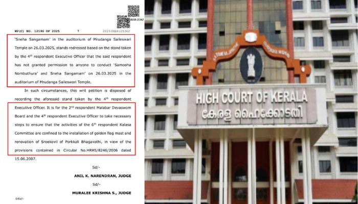 ವಿಚಾರಣೆಯ ಆಧಾರದ ಮೇಲೆ, ಹೈಕೋರ್ಟ್ ದೇವಸ್ವಂ ಮಂಡಳಿಗೆ 'ಪೊರ್ಕಳಿ ಕಲಶ ಸಮಿತಿ'ಯ ಚಟುವಟಿಕೆಗಳು ಚಿನ್ನದ ಧ್ವಜಸ್ತಂಭ ಸ್ಥಾಪನೆ ಮತ್ತು ಗರ್ಭಗುಡಿಯ ನವೀಕರಣಕ್ಕೆ ಸೀಮಿತವಾಗಿದೆ ಎಂದು ಖಚಿತಪಡಿಸಿಕೊಳ್ಳುವಂತೆ ಆದೇಶಿಸಿತು. ಇದರಿಂದಾಗಿ ಮಾರ್ಚ್ 26 ರಂದು ಸಂಜೆ 6 ಗಂಟೆಗೆ ನಡೆಯಬೇಕಿದ್ದ ಕಮ್ಯುನಿಸ್ಟರು ಯೋಜಿಸಿದ್ದ ಇಫ್ತಾರ್ ಕೂಟವನ್ನು ಈಗ ರದ್ದುಗೊಳಿಸಲಾಗಿದೆ.
