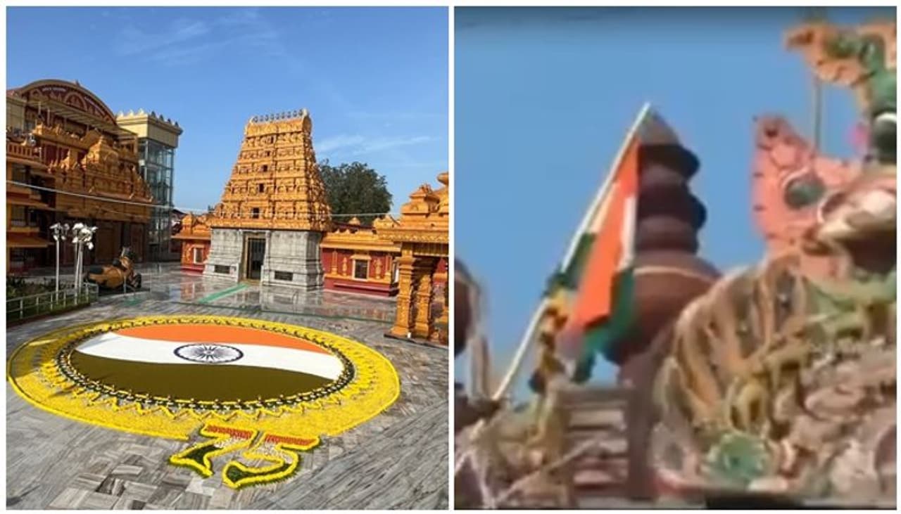 ತಮಿಳುನಾಡಿನ ದೇವಸ್ಥಾನದ ರಾಜಗೋಪುರದಲ್ಲಿ ಧ್ವಜ: ಇನ್ನು ತಮಿಳುನಾಡಿನ ಚಿದಂಬರಂ ದೇವಸ್ಥಾನದಲ್ಲಿ ರಾಷ್ಟ್ರಧ್ವಜಕ್ಕೆ ಪೂಜೆಯನ್ನು ಮಾಡಿ ದೇವಸ್ಥಾನದ ರಾಜಗೋಪುರಕ್ಕೆ ಕಟ್ಟಲಾಗಿದೆ. ಇದರ ವಿಡಿಯೋ ಕೂಡ ಸಾಕಷ್ಟು ಜನರು ಹಂಚಿಕೊಂಡಿದ್ದಾರೆ. ಧ್ವಜದ ಕಂಬಕ್ಕೆ ಹೂವಿನ ಹಾರಗಳನ್ನು ಹಾಕಿ, ಡೋಲು ಜಾಗಟೆಯ ಶಬ್ದದೊಂದಿಗೆ ಧ್ವಜವನ್ನು ರಾಜಗೋಪುರದಲ್ಲಿ ಕಟ್ಟಲಾಗಿದೆ.