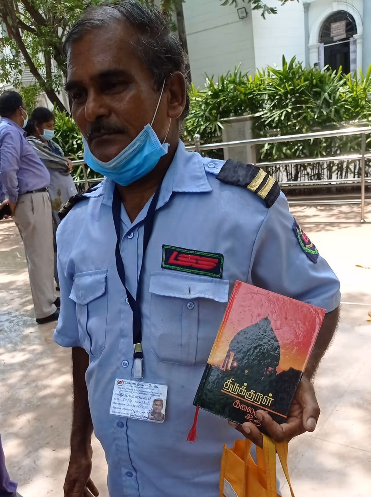 ಟ್ವಿಟ್ಟರ್ನಲ್ಲಿ ಇದನ್ನು ಶೇರ್ ಮಾಡಿ, ಮೊದಲಿಗೆ ನನ್ನನ್ನು ಭೇಟಿಯಾಗಲು ಸಾಧ್ಯವಾಗದ ರಾತ್ರಿ ಕಾವಲುಗಾರ ತಂಗದುರೈ ಅವರು ಸಿಎಂ ಪರಿಹಾರ ನಿಧಿಗೆ ಒಂದು ತಿಂಗಳ ಸಂಬಳವನ್ನು ದೇಣಿಗೆ ನೀಡಿದ್ದರು. ಈ ಬಗ್ಗೆ ತಿಳಿದುಕೊಂಡ ನಂತರ, ನಾನು ಅವರನ್ನು ಭೇಟಿಯಾಗಲು ವಿನಂತಿಸಿದೆ. ಮತ್ತು ನಾನು ಅವರಿಗೆ ಕಲೈನಾರ್ ಬರೆದ ತಿರುಕುರಲ್ ಎಂಬ ಪುಸ್ತಕವನ್ನು ಕೊಟ್ಟಿದ್ದೇನೆ ಎಂದಿದ್ದಾರೆ.