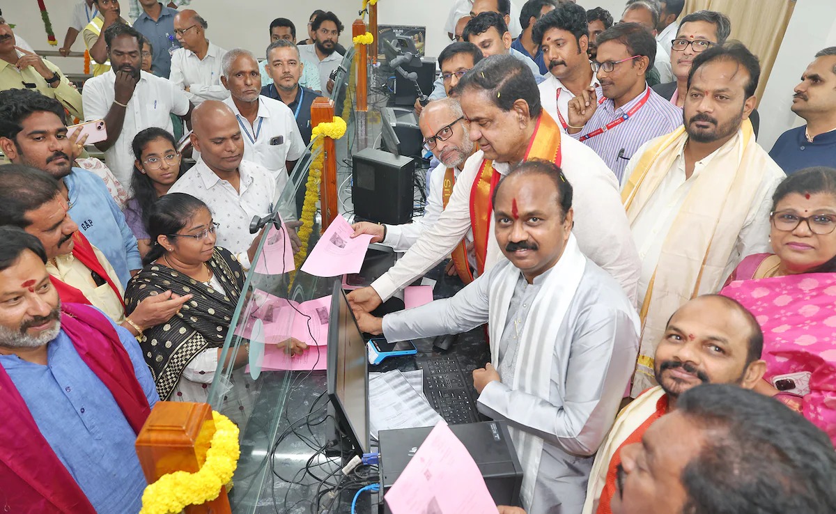 ತಿರುಮಲ (ಜು.24): ತಿರುಮಲ ತಿರುಪತಿ ದೇವಸ್ಥಾನಗಳು (ಟಿಟಿಡಿ) ಅಧಿಕೃತವಾಗಿ ಹೊಸ ಶ್ರೀವಾಣಿ ದರ್ಶನ ಟಿಕೆಟ್ (Srivani Darshan Ticket Center) ಕೇಂದ್ರವನ್ನು ಉದ್ಘಾಟಿಸಿದೆ. ತಿರುಮಲ (Tirumala) ಅನ್ನಮಯ್ಯ ಭವನದ ಎದುರು ನೆಲೆಗೊಂಡಿರುವ ಅತ್ಯಾಧುನಿಕ ಸೌಲಭ್ಯವನ್ನು ಮಂಗಳವಾರ ಸಂಜೆ ಟಿಟಿಡಿ (TTD) ಅಧ್ಯಕ್ಷ ಬಿ.ಆರ್. ನಾಯ್ಡು, ಟಿಟಿಡಿ ಕಾರ್ಯನಿರ್ವಾಹಕ ಅಧಿಕಾರಿ (ಇಒ) ಜೆ. ಶ್ಯಾಮಲಾ ರಾವ್ ಅವರೊಂದಿಗೆ ಉದ್ಘಾಟಿಸಿದರು.