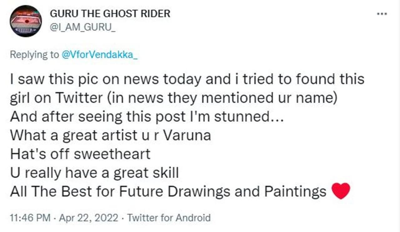 ಈ ಚಿತ್ರವನ್ನು ನೋಡಿದ ನೆಟ್ಟಿಗರು ಆಶ್ಚರ್ಯಚಕಿತರಾಗಿದ್ದು ಇದನ್ನು ಸೃಷ್ಟಿಸಿದ ಕಲಾವಿದೆಯ ಬಗ್ಗೆ ಪ್ರಶಂಸೆಯ ಸುರಿಮಳೆಗೈದಿದ್ದಾರೆ.