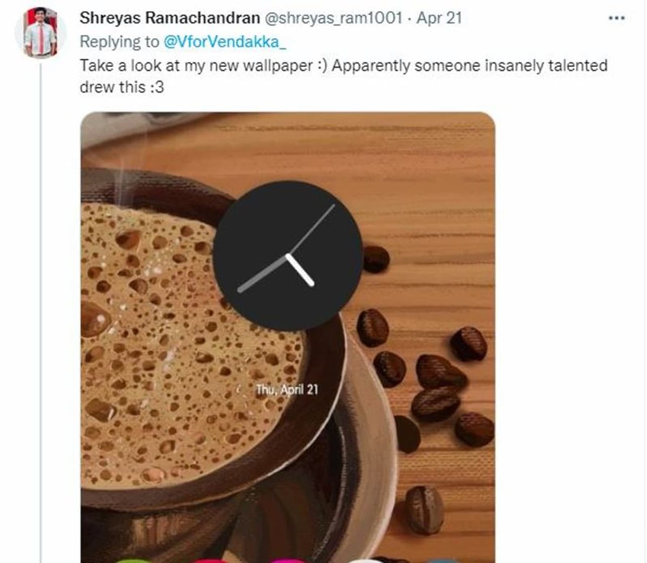 ಚೆನ್ನೈ ಮೂಲದ ಕಲಾವಿದರೊಬ್ಬರು ಟ್ವಿಟರ್ನಲ್ಲಿ ಹಂಚಿಕೊಂಡಿರುವ ಈ ಫಿಲ್ಟರ್ ಕಾಫಿಯ ಚಿತ್ರ ನಿಜವಾದ ಫೋಟೋ ಎಂದು ನೀವು ನಂಬುವಂತೆ ಮಾಡುತ್ತದೆ ಸದ್ಯ ಸೋಷಿಯಲ್ ಮೀಡಿಯಾದಲ್ಲಿ ಇದು ವೈರಲ್ ಆಗಿದ್ದು, ನಿಜವಾಗಿಯೂ ಇದು ಕಲಾಕೃತಿಯೇ ಅಥವಾ ಕಾಫಿ ಕಪ್ಪಿನ ಫೋಟೋ ಕ್ಲಿಕ್ಕಿಸಿದ್ದಾರೆಯೇ ಎಂದು ನೆಟ್ಟಿಗರು ಫುಲ್ ಕನ್ಫ್ಯೂಸ್ ಆಗಿದ್ದಾರೆ. ಟ್ವೀಟರ್ ಸೇರಿದಂತೆ ಸಾಮಾಜಿಕ ಜಾಲತಾಣಗಳಲ್ಲಿ ಈ ಚಿತ್ರಕ್ಕೆ ಸಾಕಷ್ಟು ಲೈಕ್ಸ್ ಹಾಗೂ ಕಮೆಂಟ್ಸ್ ಬಂದಿವೆ.