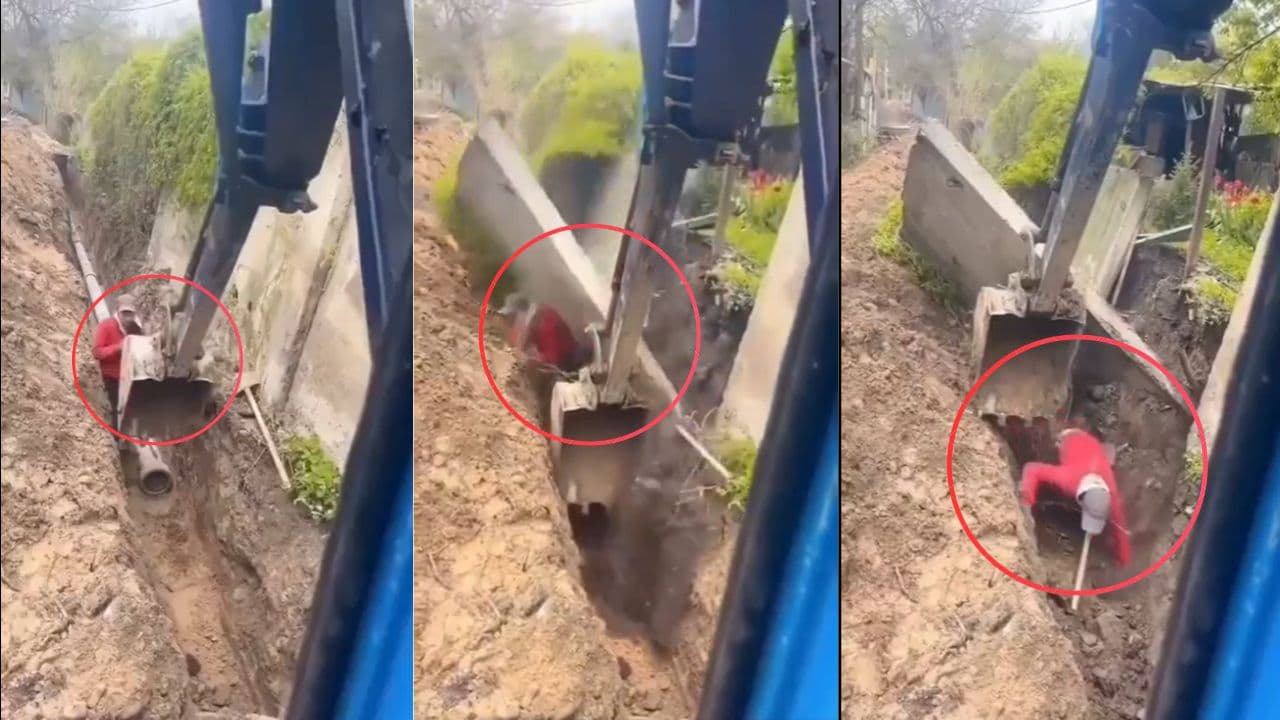 ವೈರಲ್ ಆಗಿರುವ ವಿಡಿಯೋದಲ್ಲಿ ಕಟ್ಟಡವೊಂದರ ಪಕ್ಕದಲ್ಲಿ ಜೆಸಿಬಿ ಯಂತ್ರದ ಮೂಲಕ ಹಳ್ಳ ತೋಡಲಾಗುತ್ತಿರುತ್ತದೆ. ಈ ವೇಳೆ ಎತ್ತರದ ಮತ್ತು ಭಾರವಾದ ಗೋಡೆಯೊಂದು ಹಠಾತ್ತಾಗಿ ಕುಸಿಯಲು ಪ್ರಾರಂಭಿಸುತ್ತದೆ. ಅಲ್ಲಿಯೇ ನಿಂತಿದ್ದ ಕಾರ್ಮಿಕನೊಬ್ಬನ ಮೇಲೆ ಗೋಡೆ ಬೀಳುವ ಕ್ಷಣದಲ್ಲಿ, ಜೆಸಿಬಿ ಚಾಲಕ ಮಿಂಚಿನ ವೇಗದಲ್ಲಿ ಕಾರ್ಯನಿರ್ವಹಿಸುತ್ತಾನೆ. ತನ್ನ ಯಂತ್ರದ 'ಬಕೆಟ್' ಅನ್ನು ತಕ್ಷಣವೇ ಗೋಡೆಗೆ ಆಸರೆಯಾಗಿ ಇರಿಸಿ, ಅದು ಕಾರ್ಮಿಕನ ಮೇಲೆ ಬೀಳದಂತೆ ತಡೆಯುತ್ತಾನೆ. ಒಂದು ಕ್ಷಣ ತಡವಾಗಿದ್ದರೂ ಅಲ್ಲಿ ದೊಡ್ಡ ದುರಂತವೇ ಸಂಭವಿಸುತ್ತಿತ್ತು.