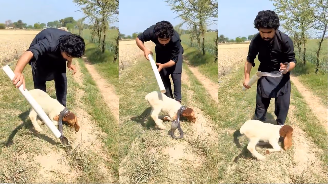 ಸಾಮಾಜಿಕ ಜಾಲತಾಣದಲ್ಲಿ ವೈರಲ್ ಆದ ವಿಡಿಯೋವೊಂದರಲ್ಲಿ, ನಾಗರಹಾವು ಕುತ್ತಿಗೆಗೆ ಸುತ್ತಿಕೊಂಡಿದ್ದರೂ ಕುರಿಯೊಂದು ನಿರಾತಂಕವಾಗಿ ಹುಲ್ಲು ಮೇಯುತ್ತಿರುತ್ತದೆ. ತಕ್ಷಣವೇ ಸ್ಥಳಕ್ಕೆ ಬಂದ ಮಾಲೀಕ, ಪಿವಿಸಿ ಪೈಪ್ ಬಳಸಿ ಹಾವನ್ನು ಜಾಗರೂಕತೆಯಿಂದ ಬಿಡಿಸಿ ಕುರಿಯನ್ನು ರಕ್ಷಿಸುತ್ತಾನೆ.
