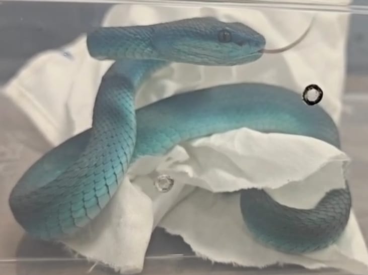 ಅಧಿಕಾರಿಗಳು ಪ್ರಯಾಣಿಕನಿಂದ ಜೇಡ ಬಾಲದ ಕೊಂಬಿನ ವೈಪರ್ಗಳು, ಏಷ್ಯನ್ ಎಲೆ ಆಮೆಗಳು ಮತ್ತು ಇಂಡೋನೇಷಿಯನ್ ಪಿಟ್ ವೈಪರ್ಗಳನ್ನು ವಶಪಡಿಸಿಕೊಂಡಿದ್ದಾರೆ. 48 ವಿಷಪೂರಿತ ವೈಪರ್ಗಳು ಸೇರಿದಂತೆ ಸರೀಸೃಪಗಳನ್ನು ಆ ವ್ಯಕ್ತಿಯು ಚೆಕ್-ಇನ್ ಲಗೇಜ್ನಲ್ಲಿ ಮರೆಮಾಡಿದ್ದ ಎಂದು ಕಂಡುಬಂದಿದೆ. ಭಾರತದ ವಿವಿಧ ವನ್ಯಜೀವಿ ಸಂರಕ್ಷಣಾ ಕಾನೂನುಗಳ ಅಡಿಯಲ್ಲಿ ಸರೀಸೃಪಗಳನ್ನು ವಶಪಡಿಸಿಕೊಳ್ಳಲಾಗಿದೆ. ಪ್ರಯಾಣಿಕನ ಹೆಸರನ್ನು ತಿಳಿಸಲಾಗಿಲ್ಲ ಮತ್ತು ಅವನು ಬಂಧನದಲ್ಲಿರುವುದರಿಂದ, ಅವರು ಅವನ ಬಂಧನದ ಬಗ್ಗೆ ಯಾವುದೇ ಪ್ರತಿಕ್ರಿಯೆ ನೀಡಿಲ್ಲ.