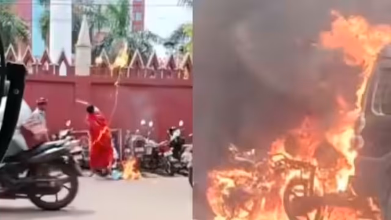 ಮಹಿಳೆಯೊಬ್ಬಳು ತಾನು ಮಾಡುತ್ತಿರುವ ಕೃತ್ಯವನ್ನು ವೀಡಿಯೋ ಮಾಡುವಂತೆ ಅಂಗಡಿ ಮಾಲೀಕರೊಬ್ಬರಿಗೆ ತಿಳಿಸಿ ಬಳಿಕ ಒಡಿಶಾದ ಹೈಕೋರ್ಟ್ ಮುಂದೆಯೇ ವಾಹನಗಳಿಗೆ ಪೆಟ್ರೋಲ್ ಸುರಿದು ಬೆಂಕಿ ಹಚ್ಚಿದಂತಹ ಘಟನೆ ನಡೆದಿದೆ.