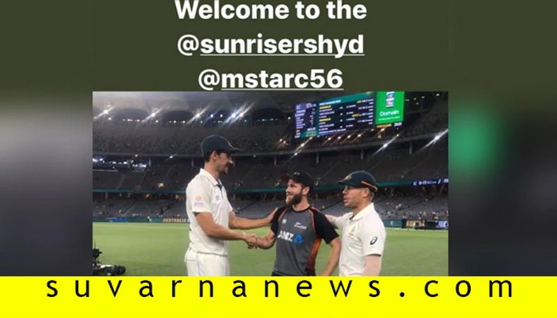 ಆಸ್ಟ್ರೇಲಿಯಾ-ನ್ಯೂಜಿಲೆಂಡ್ ನಡುವಿನ ಮೊದಲ ಟೆಸ್ಟ್ ಪಂದ್ಯ ಮುಕ್ತಾಯದ ಬಳಿಕ ಸನ್’ರೈಸರ್ಸ್ ಆಟಗಾರರಾದ ವಾರ್ನರ್, ಕಿವೀಸ್ ನಾಯಕ ಕೇನ್ ವಿಲಿಯಮ್ಸನ್ ಹಾಗೂ ಸ್ಟಾರ್ಕ್ ಒಟ್ಟಾಗಿ ಮಾತುಕತೆ ನಡೆಸುತ್ತಿರುವ ಚಿತ್ರವನ್ನು ಪೋಸ್ಟ್ ಮಾಡಿರುವ ವಾರ್ನರ್, ಹೈದರಾಬಾದ್ ತಂಡಕ್ಕೆ ಆಹ್ವಾನಿಸಿದ್ದಾರೆ.