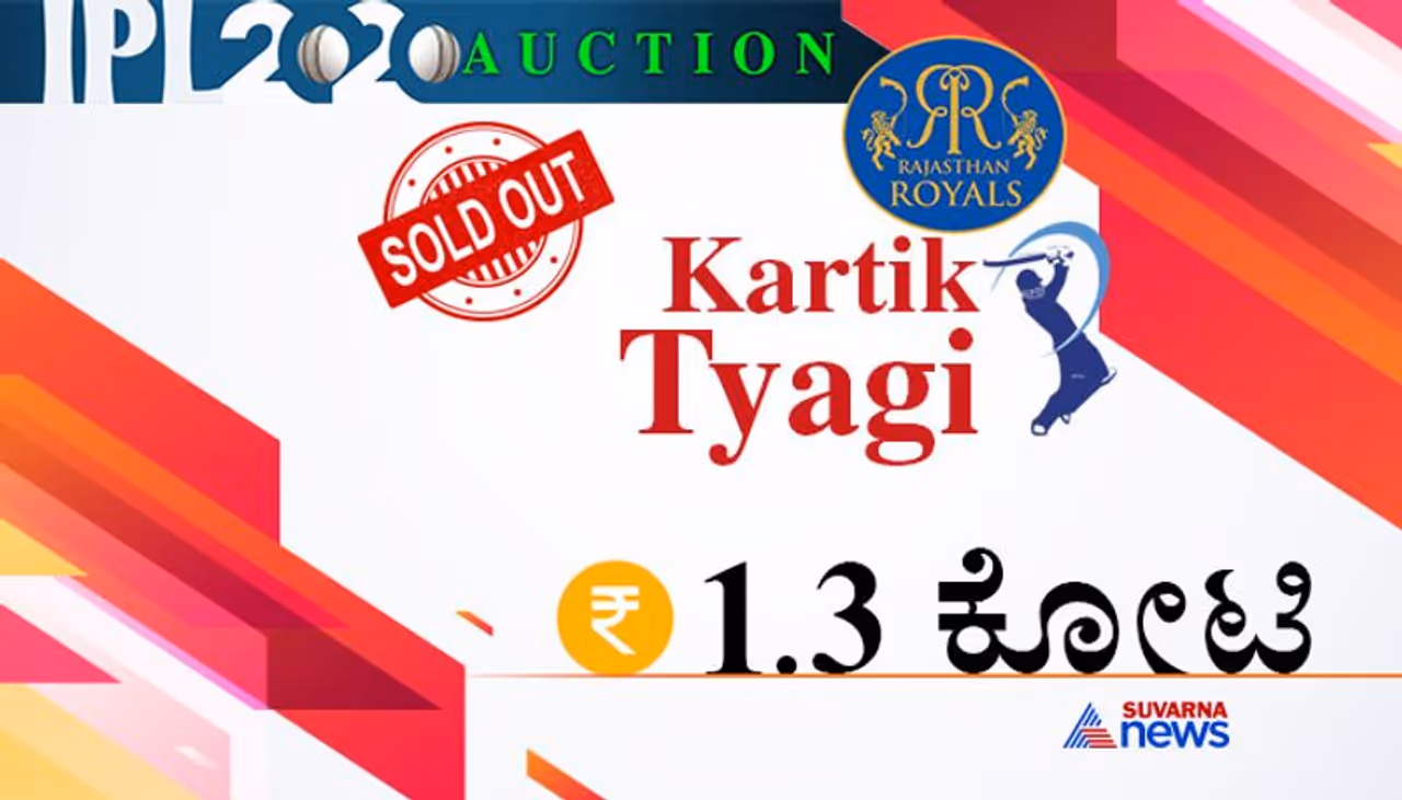 20 ಲಕ್ಷ ಮೂಲಬೆಲೆ ಹೊಂದಿದ್ದ ಉತ್ತರ ಪ್ರದೇಶದ ವೇಗದ ಬೌಲರ್ ಕಾರ್ತಿಕ್ ತ್ಯಾಗಿ ಅವರನ್ನು 1.30 ಕೋಟಿಗೆ ರಾಜಸ್ಥಾನ ರಾಯಲ್ಸ್ ಖರೀದಿಸಿದೆ