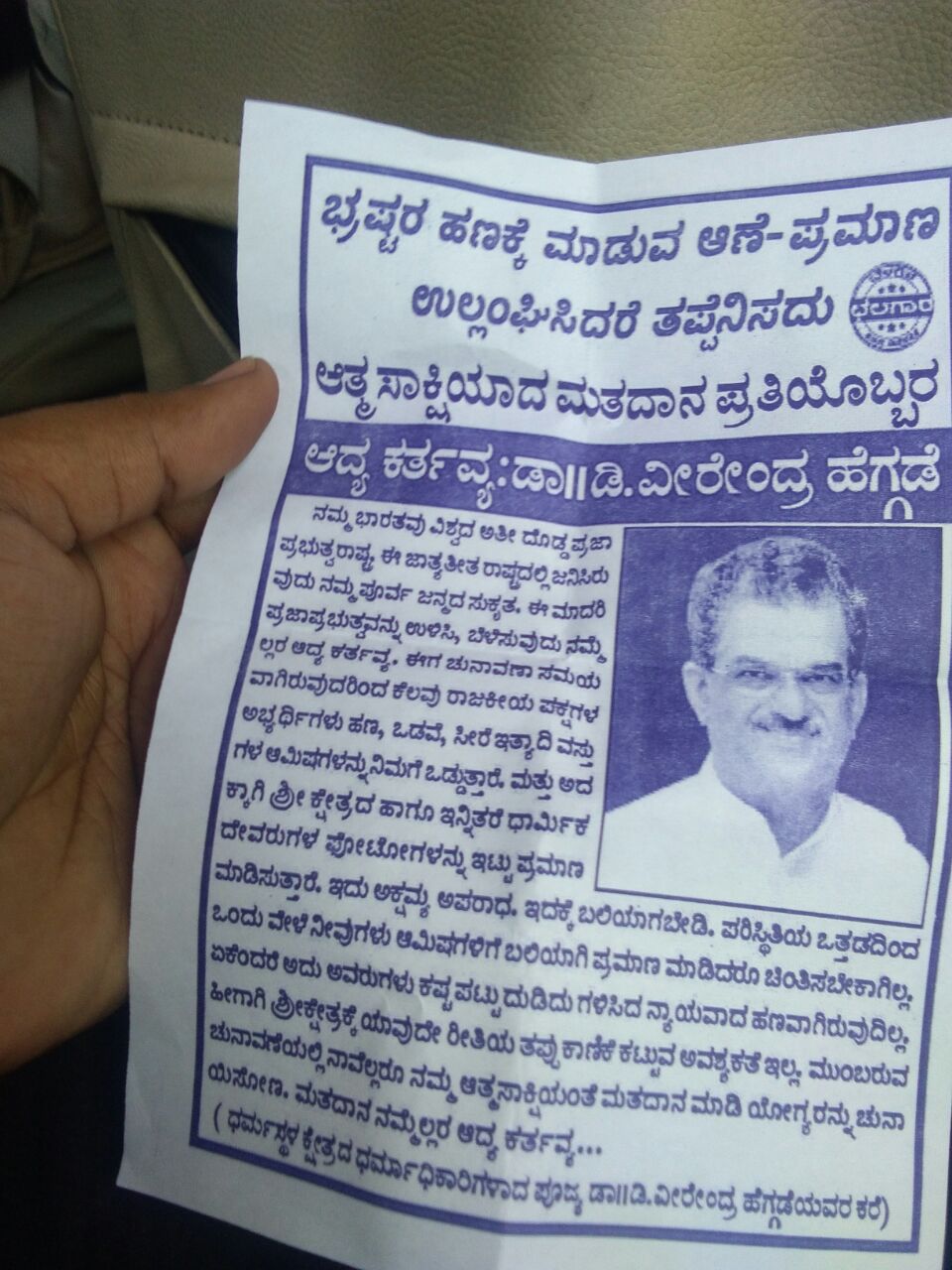 ಶ್ರೀ ಹೆಗ್ಗಡೆಯವರು ಹಂಚಿದ ಕರಪತ್ರದ ಒಕ್ಕಣಿಕೆ ಹೀಗಿದೆ...