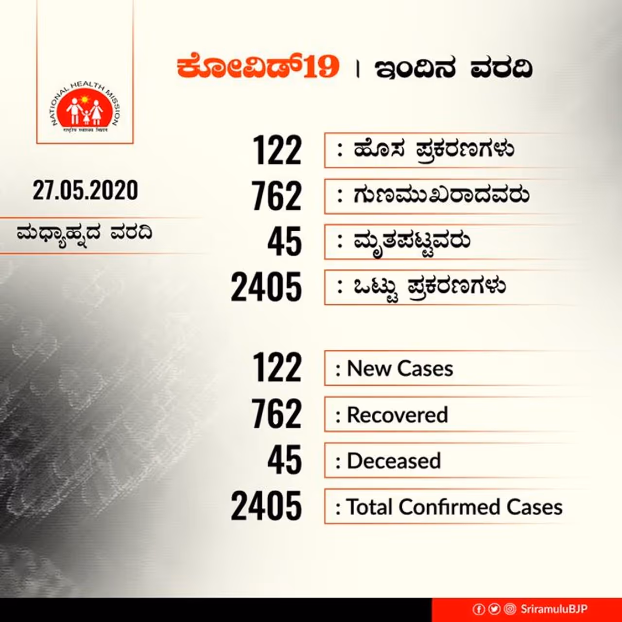 ಬುಧವಾರ ಮಧ್ಯಾಹ್ನದ ಕೊರೋನಾ ಅಂಕಿ-ಅಂಶ ಇಂತಿದೆ