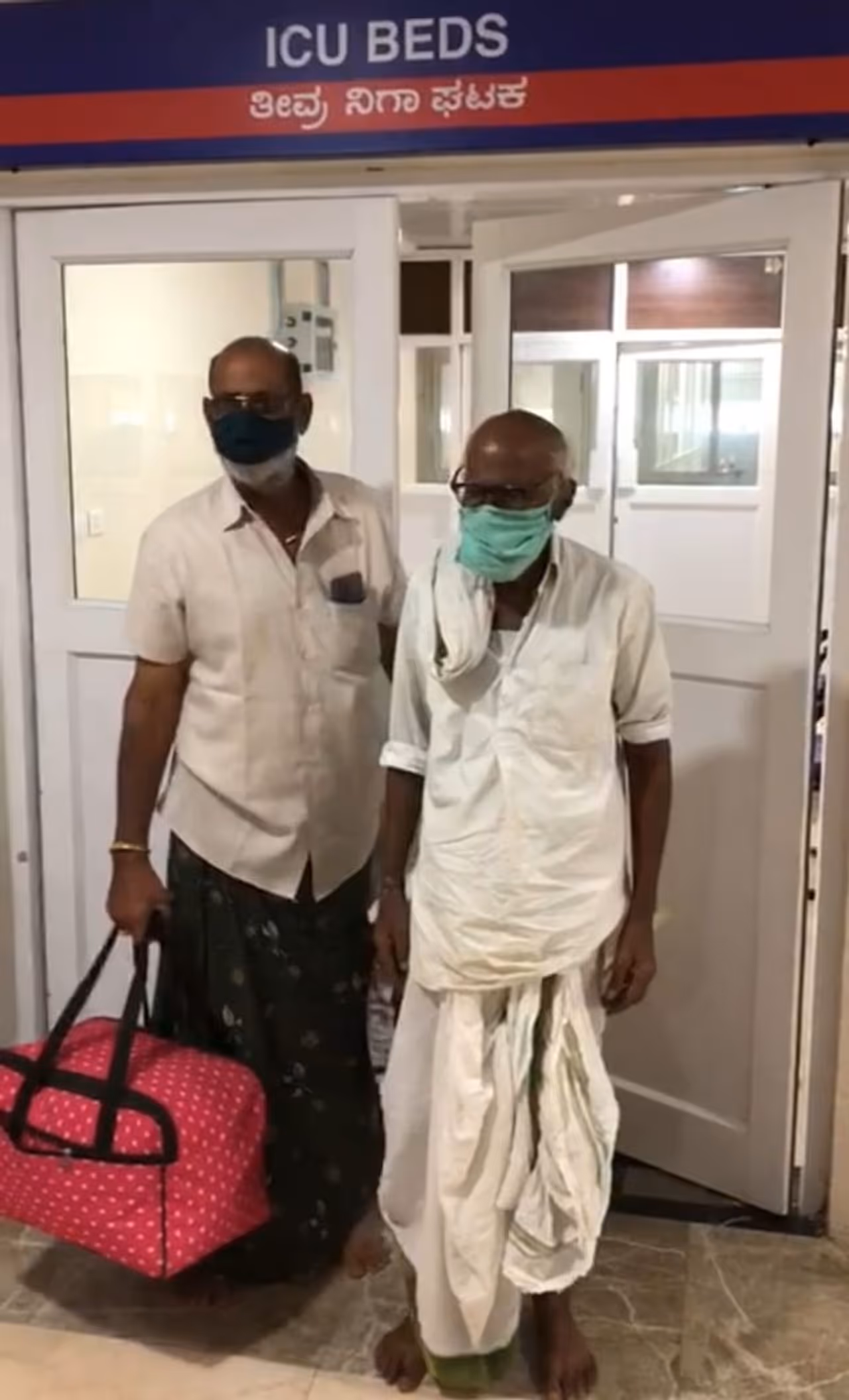 ವೈದ್ಯರ ತಂಡದ ವಿಶೇಷ ನಿಗಾ, ಮುತುವರ್ಜಿ ವಹಿಸಿದ ಪರಿಣಾಮ ಗುಣಮುಖ| ಸೆ. 1ರಂದು ಕೊರೋನಾ ಬಾಧಿತರಾಗಿ 99 ವರ್ಷ ವಯಸ್ಸಿನ ಅಚ್ಯುತ್ ರಾವ್ ಹಾಗೂ ಅವರ ಮಗ 67 ವರ್ಷ ವಯಸ್ಸಿನ ರಂಗರಾವ್ ಟ್ರಾಮಾಕೇರ್ ಸೆಂಟರ್ಗೆ ದಾಖಲಾಗಿದ್ದರು|