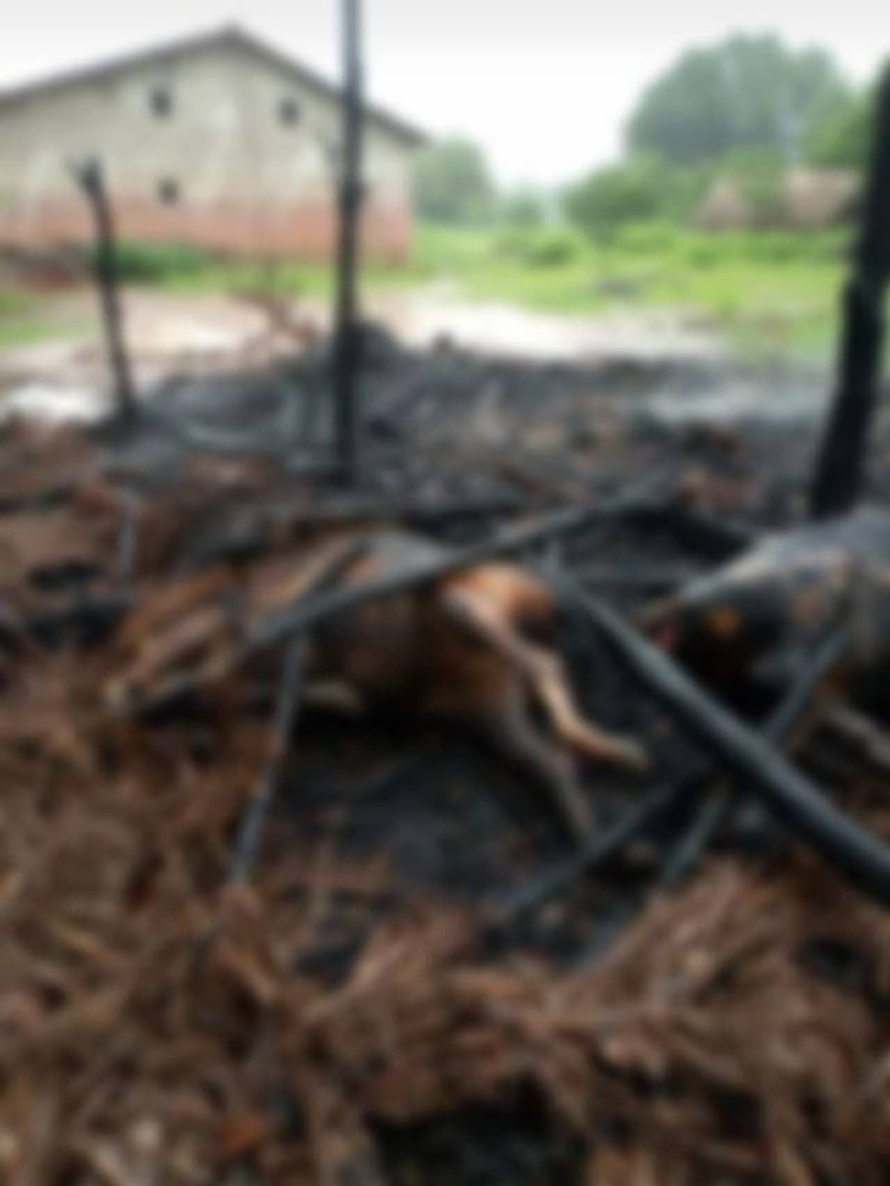 ಘಟನೆಯಲ್ಲಿ ಎರಡು ಎತ್ತು, ಎರಡು ಆಕಳು, ಎರಡು ಕರುಗಳು, ಒಂದು ಕುರಿ ಸಂಪೂರ್ಣವಾಗಿ ಸುಟ್ಟು ಕರಕಲಾಗಿವೆ. ಶಿವರಾಯ ಚಂದ್ರಪ್ಪ ಪಾಗದ ಎಂಬುವರಿಗೆ ಸೇರಿದ ಜಾನುವಾರುಗಳು ಎಂದು ತಿಳಿದು ಬಂದಿದೆ.