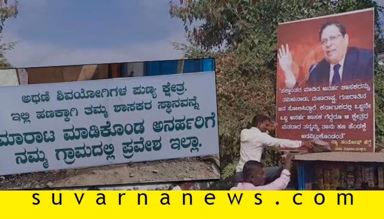 ಶಾಸಕ ಕುಮಟಳ್ಳಿ ವಿರುದ್ಧ ಗ್ರಾಮಸ್ಥರು ಬೃಹತ್ ಬ್ಯಾನರ್ ಹಾಕಿ ಆಕ್ರೋಶ ವ್ಯಕ್ತಪಡಿಸಿದ್ದಾರೆ. ಅನರ್ಹರಿಗೆ ನಮ್ಮ ಗ್ರಾಮಕ್ಕೆ ಪ್ರವೇಶ ಇಲ್ಲ ಎಂದು ಬ್ಯಾನರ್ ಮೂಲಕ ತಿಳಿಸಲಾಗಿದೆ.