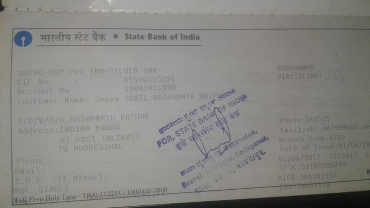 ಈ ಯೋಧನಿಗೆ ಸಹಕರಿಸಲು ಈ ಕೆಳಗಿನ ಅಕೌಂಟ್ ನಂಬರ್ಗೆ ಹಣ ಕಳುಹಿಸಬಹುದು...