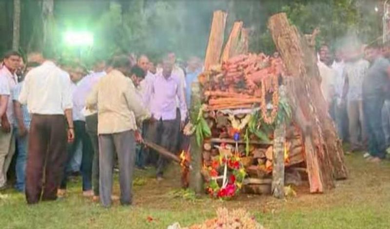 ಹಲಸು, ಶ್ರೀಗಂಧ, ಮಾವು, ಆಲದ ಮರದಿಂದ ಸಿದ್ಧಪಡಿಸಿರುವ ಚಿತೆಯಲ್ಲಿ ಒಕ್ಕಲಿಗ ಸಂಪ್ರದಾಯದಂತೆ ಅಂತಿಮ ವಿಧಿವಿಧಾನ ನೆರವೇರಿಸಲಾಯಿತು. ಸಿಎಂ ಬಿಎಸ್ ಯಡಿಯೂರಪ್ಪ, ಮಾಜಿ ಸಿಎಂ ಕುಮಾರಸ್ವಾಮಿ, ಸ್ವಯಂ ನಿವೃತ್ತಿ ಪಡೆದುಕೊಂಡಿರುವ ಐಪಿಎಸ್ ಅಧಿಕಾರಿ ಅಣ್ಣಾಮಲೈ ಸೇರಿದಂತೆ 10 ಸಾವಿರಕ್ಕೂ ಅಧಿಕ ಮಂದಿ ಅಭಿಮಾನಿಗಳು, ಸ್ನೇಹಿತರು ಅಂತಿಮ ನಮನ ಸಲ್ಲಿಸಿದರು.